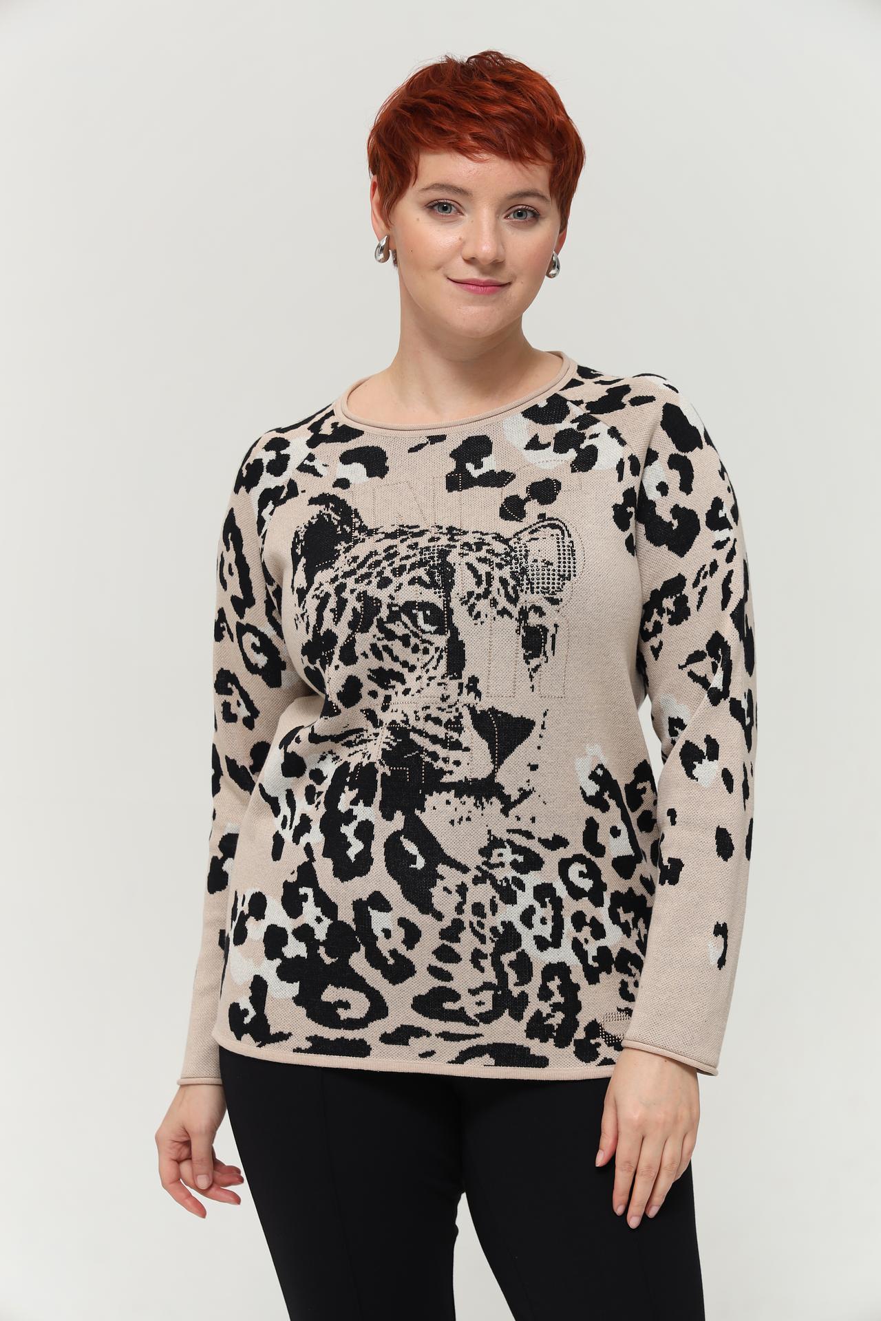 Пуловер Rabe collection бежевый с леопардовым принтом
