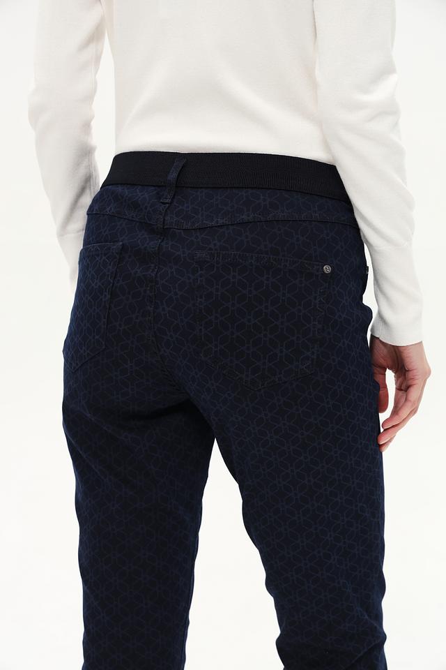 Представляем вашему вниманию стильные джинсы от бренда Rabe collection. Данная модель выполнена в темно-синем цвете и украшена оригинальным геометрическим узором, который придает образу изысканность.