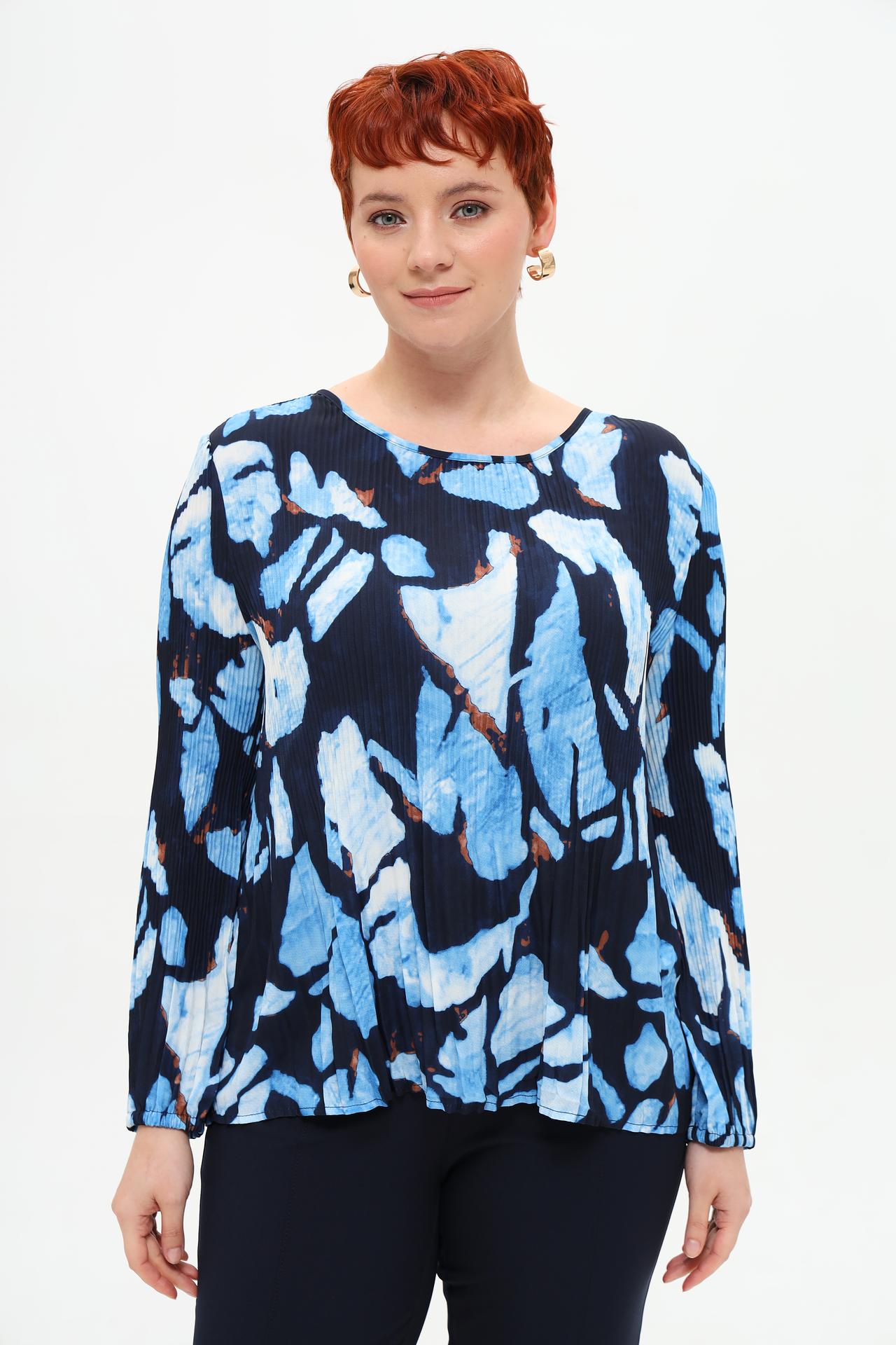 Блуза Rabe collection синяя с абстрактным плиссированным принтом