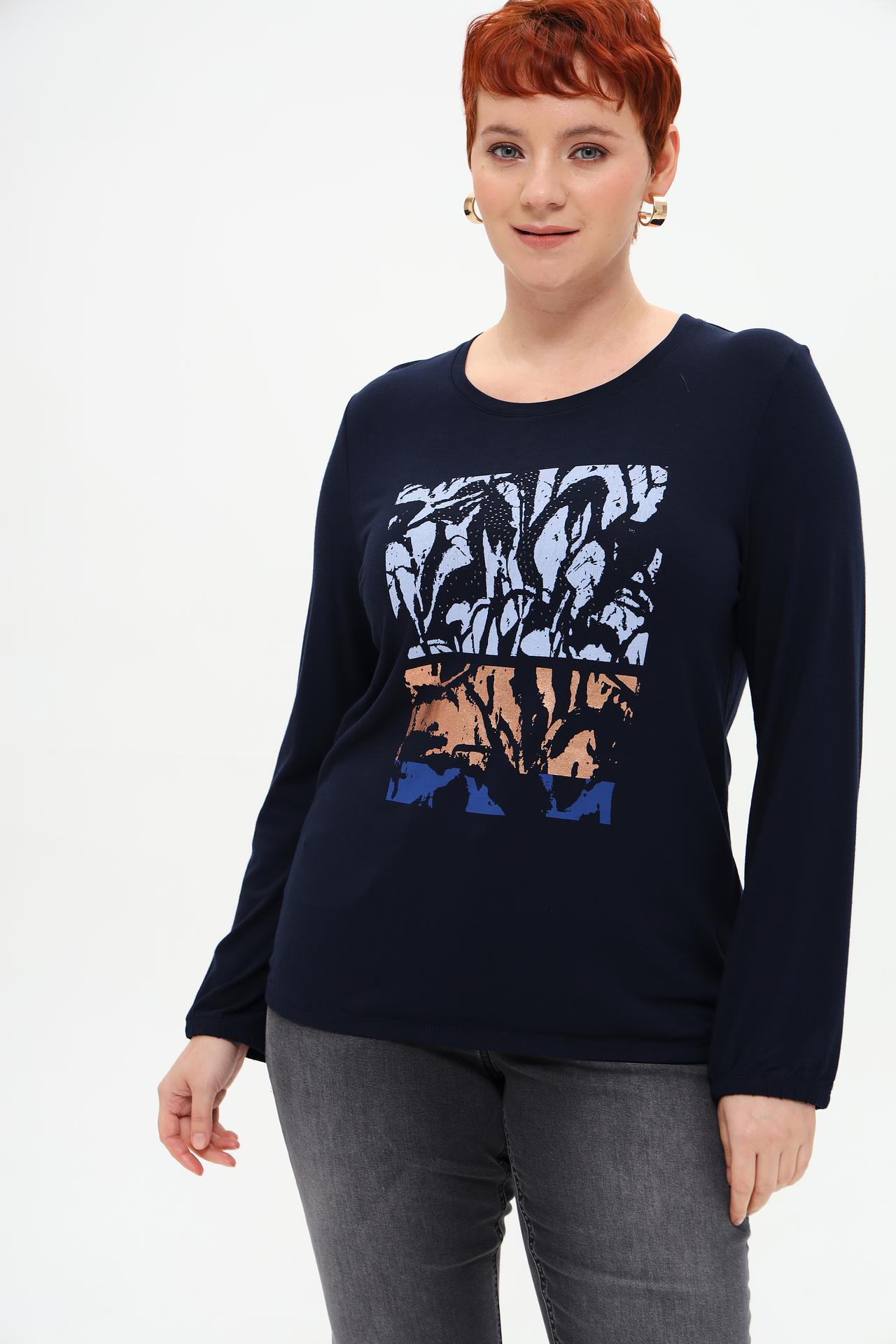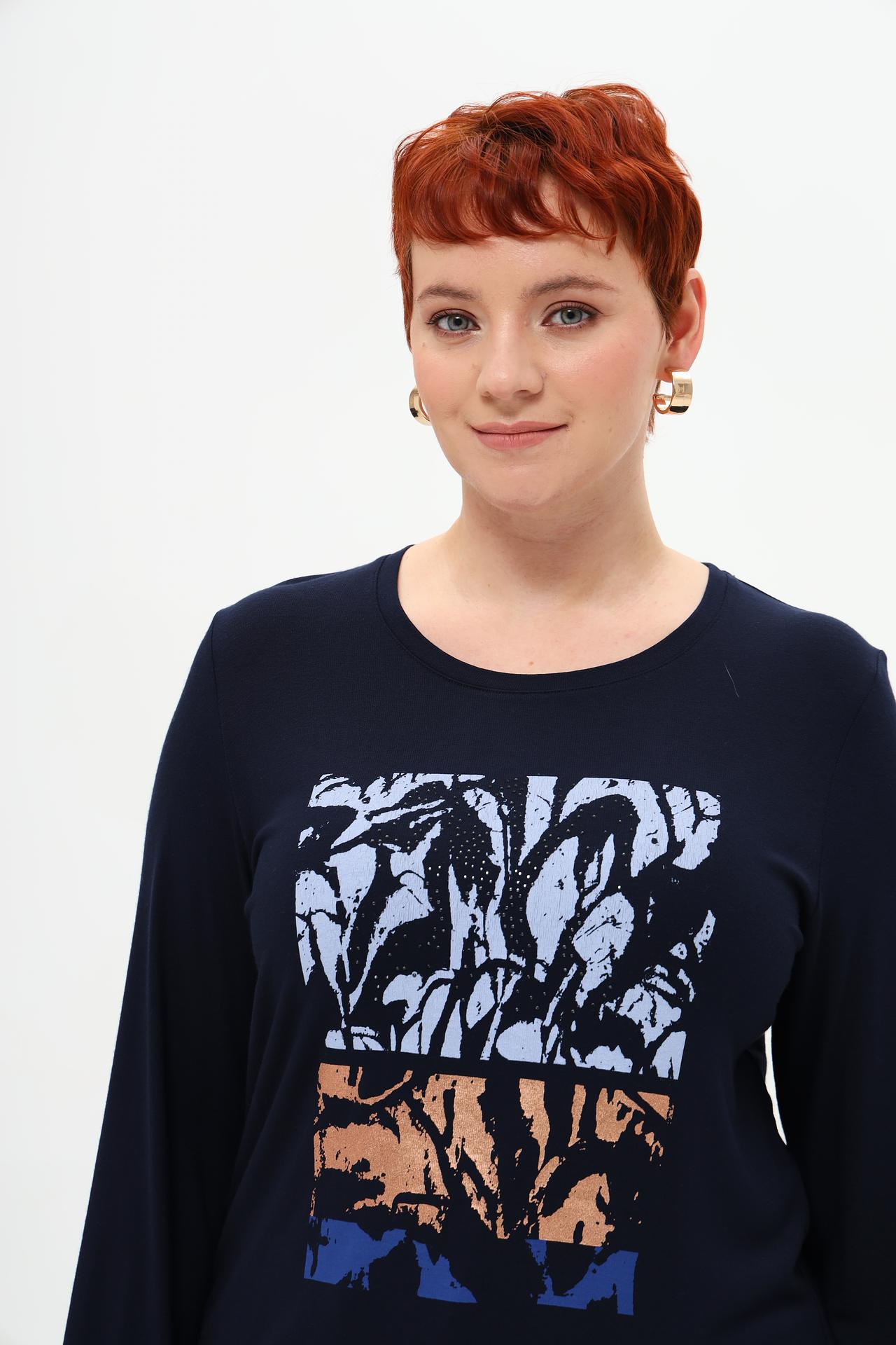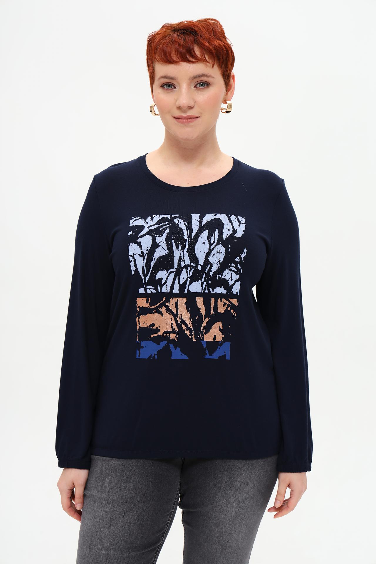 Изящный синий лонгслив от Rabe collection с оригинальным принтом станет отличным дополнением к вашему гардеробу. Мягкий и приятный к телу материал, состоящий из 92% вискозы и 8% эластана, обеспечивает комфорт и свободу движений. Стильный принт добавляет образу индивидуальности и делает этот лонгслив прекрасным выбором для создания модных и запоминающихся образов.