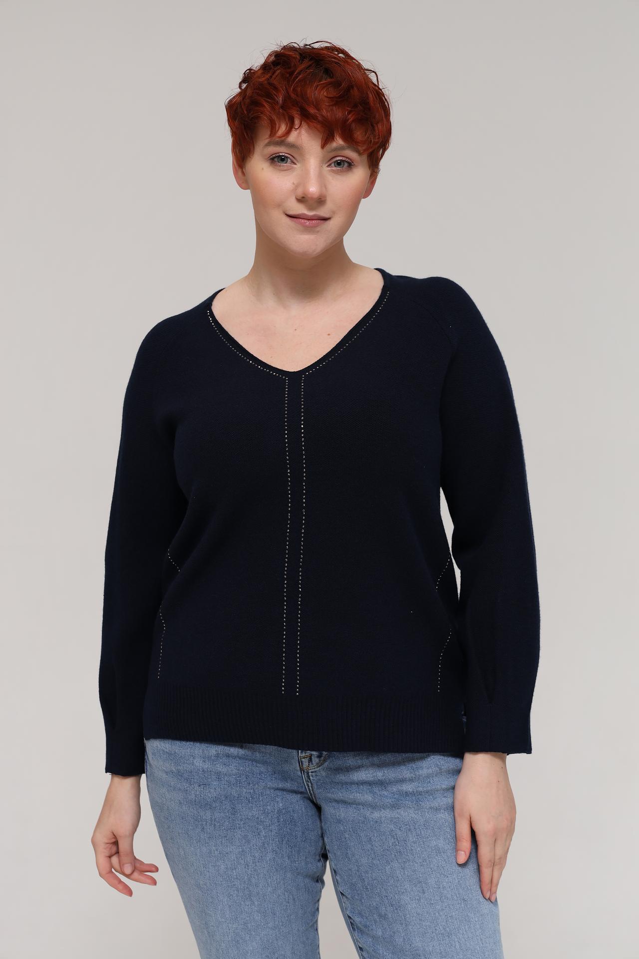 Пуловер Rabe collection тёмно-синий с декоративной отделкой