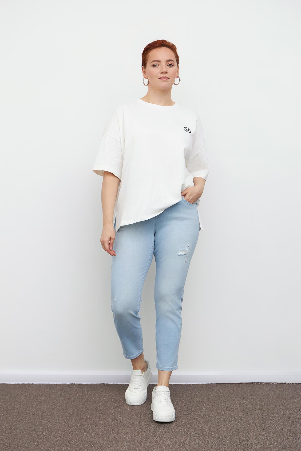 - Эффект потертости: Модный дизайн с потертостями придает образу актуальность и непринужденность.