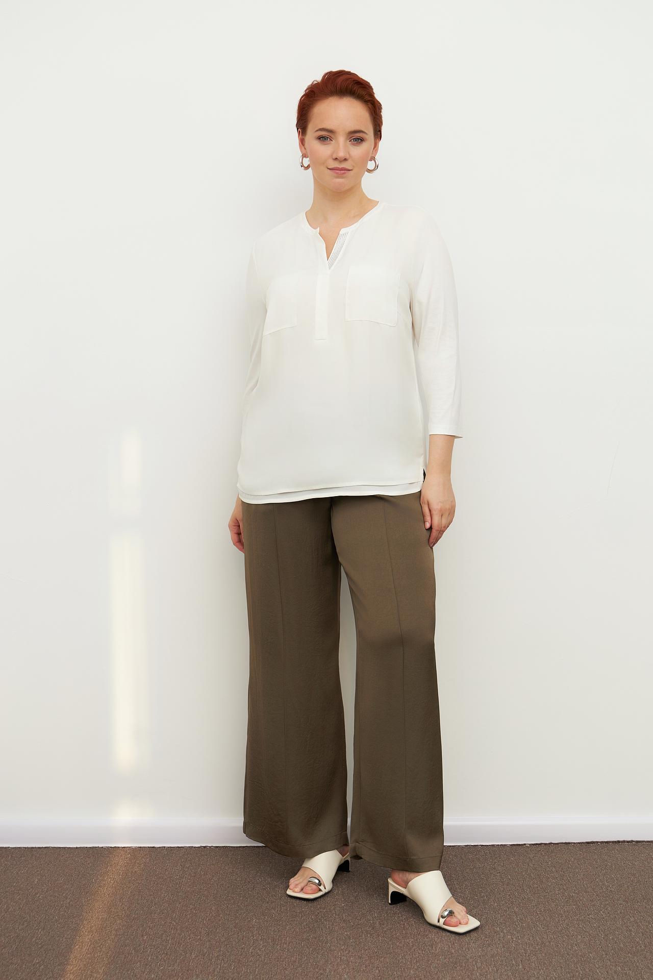 Эта блуза станет прекрасным дополнением вашего гардероба, подходящим как для повседневных образов, так и для особых случаев. Легкая ткань и лаконичный дизайн делают ее универсальной и стильной.