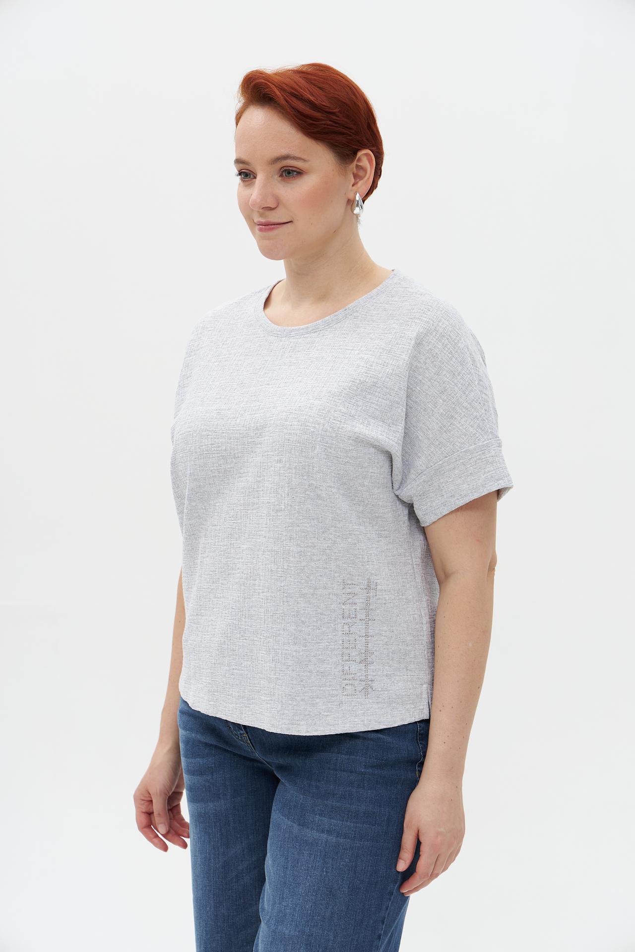 - Дизайн: Свободный крой и короткие рукава создают расслабленный, но элегантный силуэт. Текстурный узор ткани придает изделию изысканность, а ненавязчивый принт добавляет оригинальности.