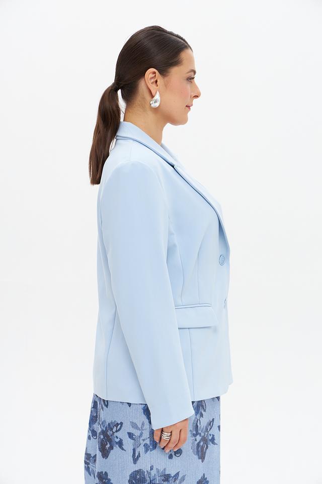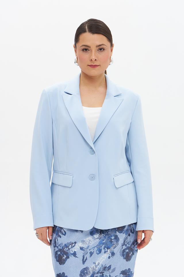 Этот жакет от Rabe collection выполнен в нежном голубом цвете и станет прекрасным дополнением к вашему гардеробу. Жакет имеет классический приталенный силуэт, который подчеркнет достоинства фигуры.