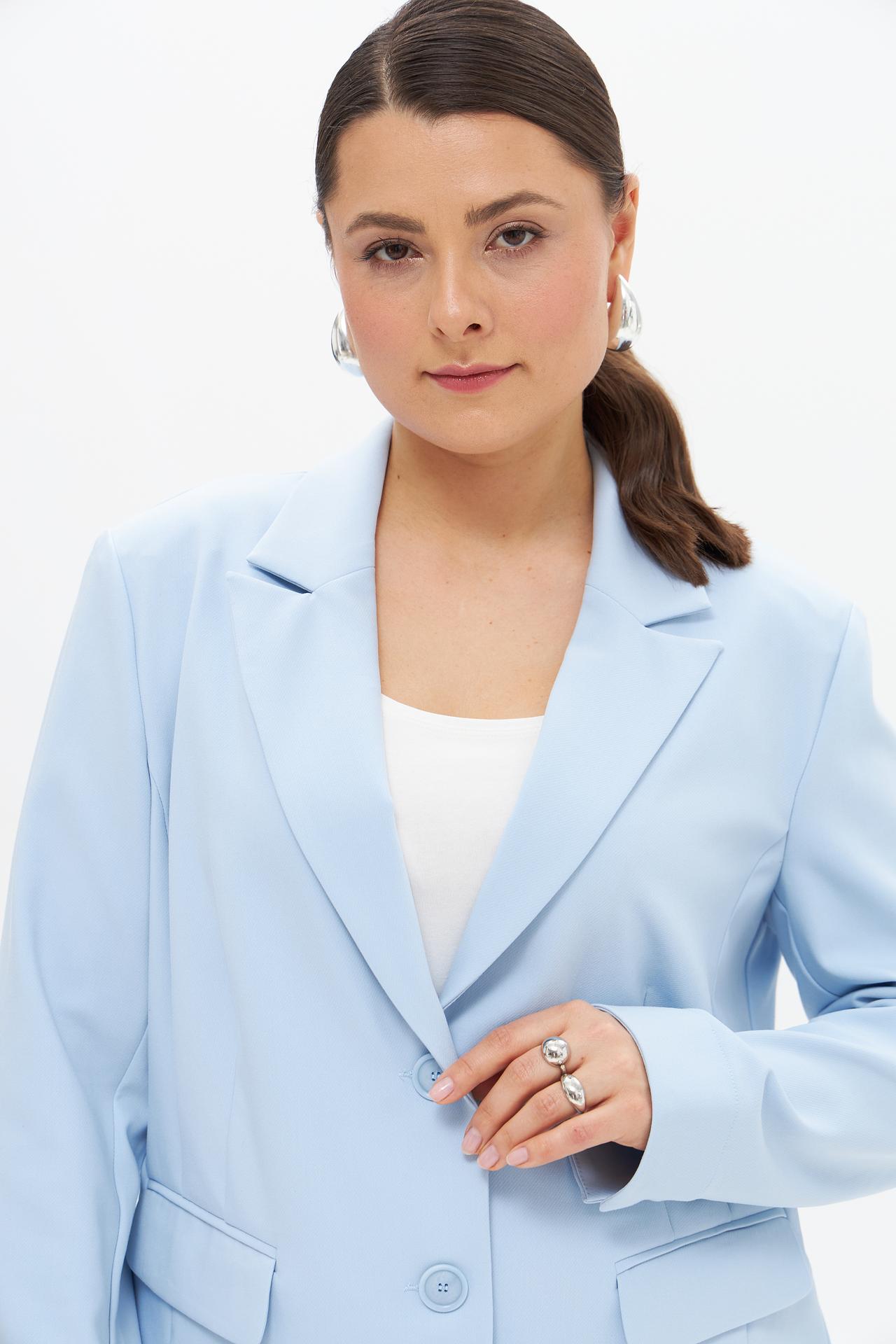 - Идеальная посадка: Жакет отлично сидит по фигуре, подчеркивая ее достоинства и создавая элегантный силуэт.
