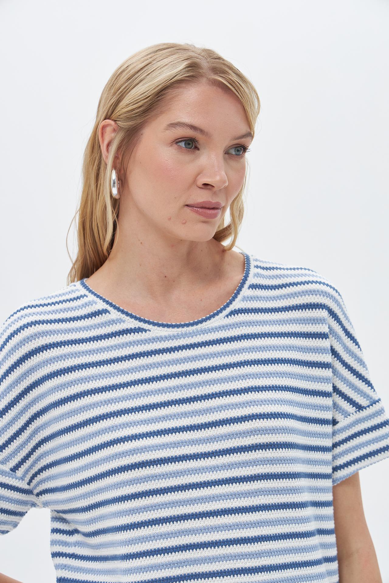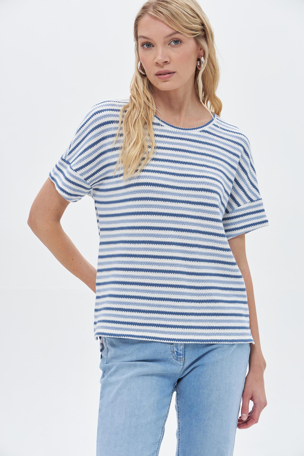 Полосатый пуловер Rabe collection с коротким рукавом