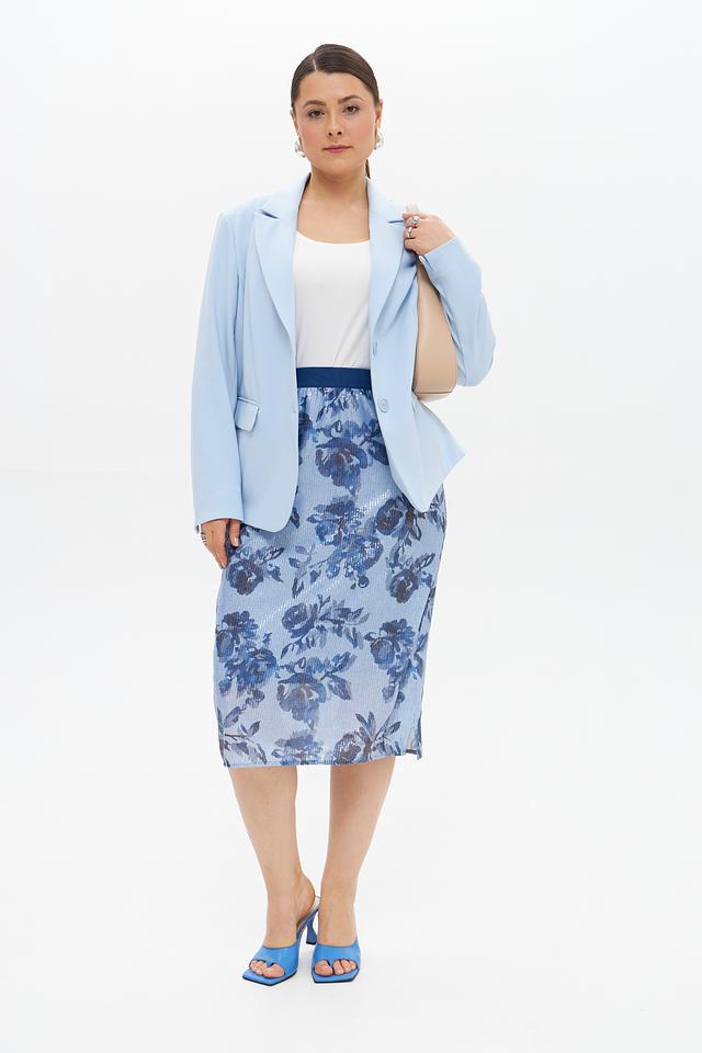 Эта юбка от Rabe collection станет прекрасным дополнением к вашему гардеробу. Она выполнена в нежном голубом цвете и украшена красивым цветочным принтом, что придает ей романтичный и женственный вид.