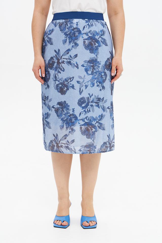 Юбка Rabe collection голубого цвета с цветочным принтом – стильное и комфортное решение для создания элегантного образа. Модель выполнена из полиэстера и имеет удобную посадку по фигуре. Состав: полиэстер 100%