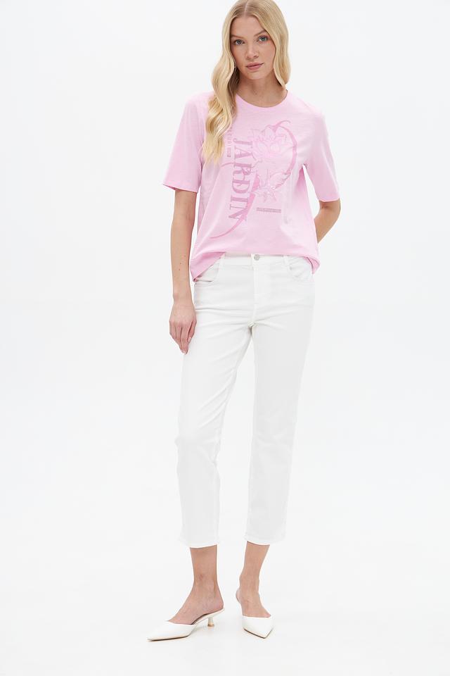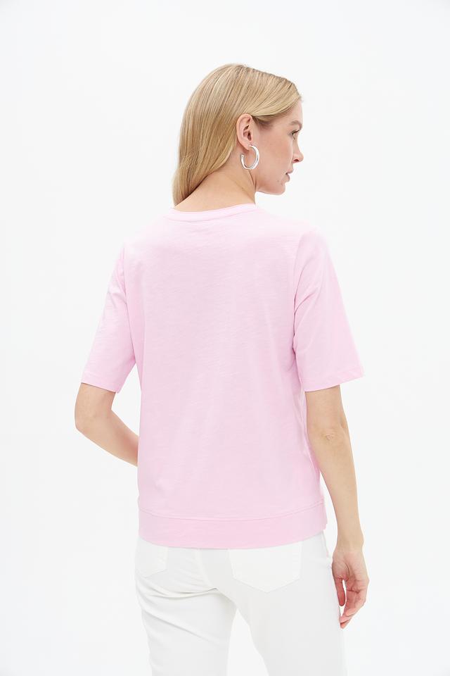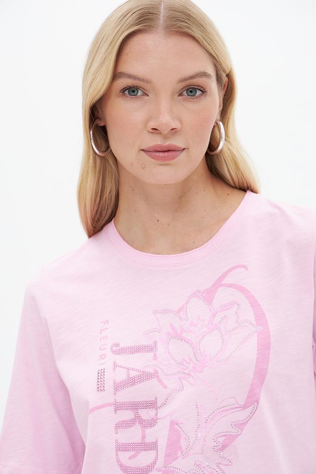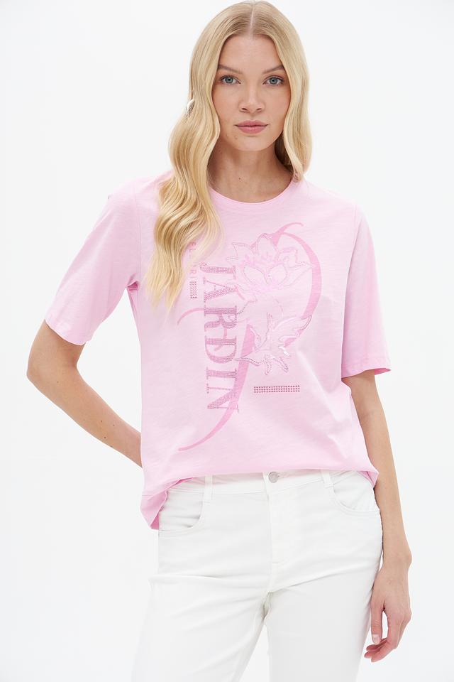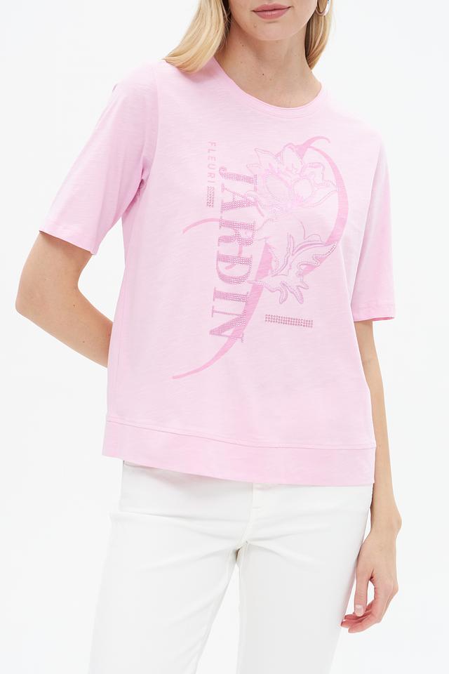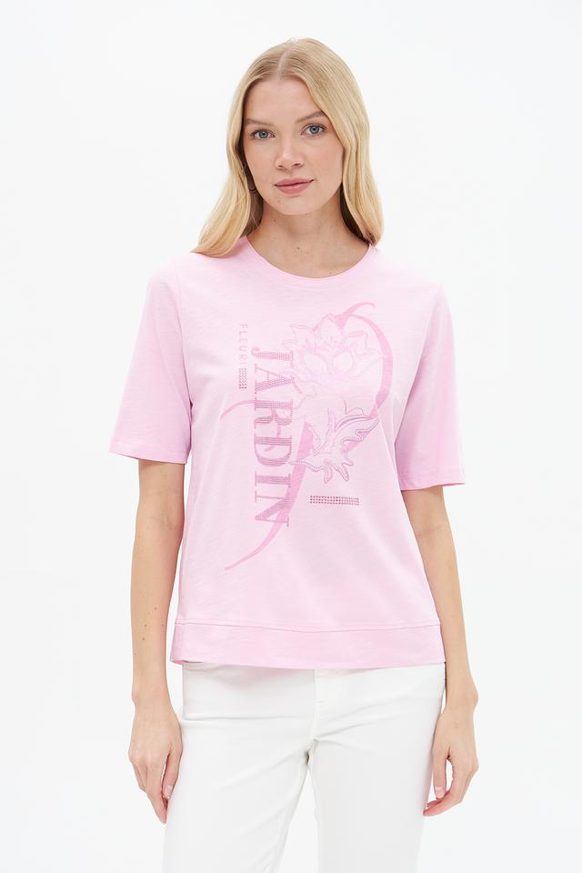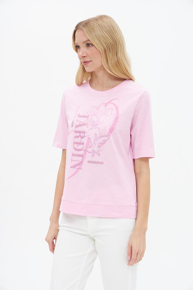 Женская футболка Rabe collection нежно-розового цвета с ярким цветочным принтом. Изготовлена из 100% хлопка, обеспечивающего комфорт и воздухопроницаемость. Отличный выбор для создания стильного повседневного образа. Состав: хлопок 100%
