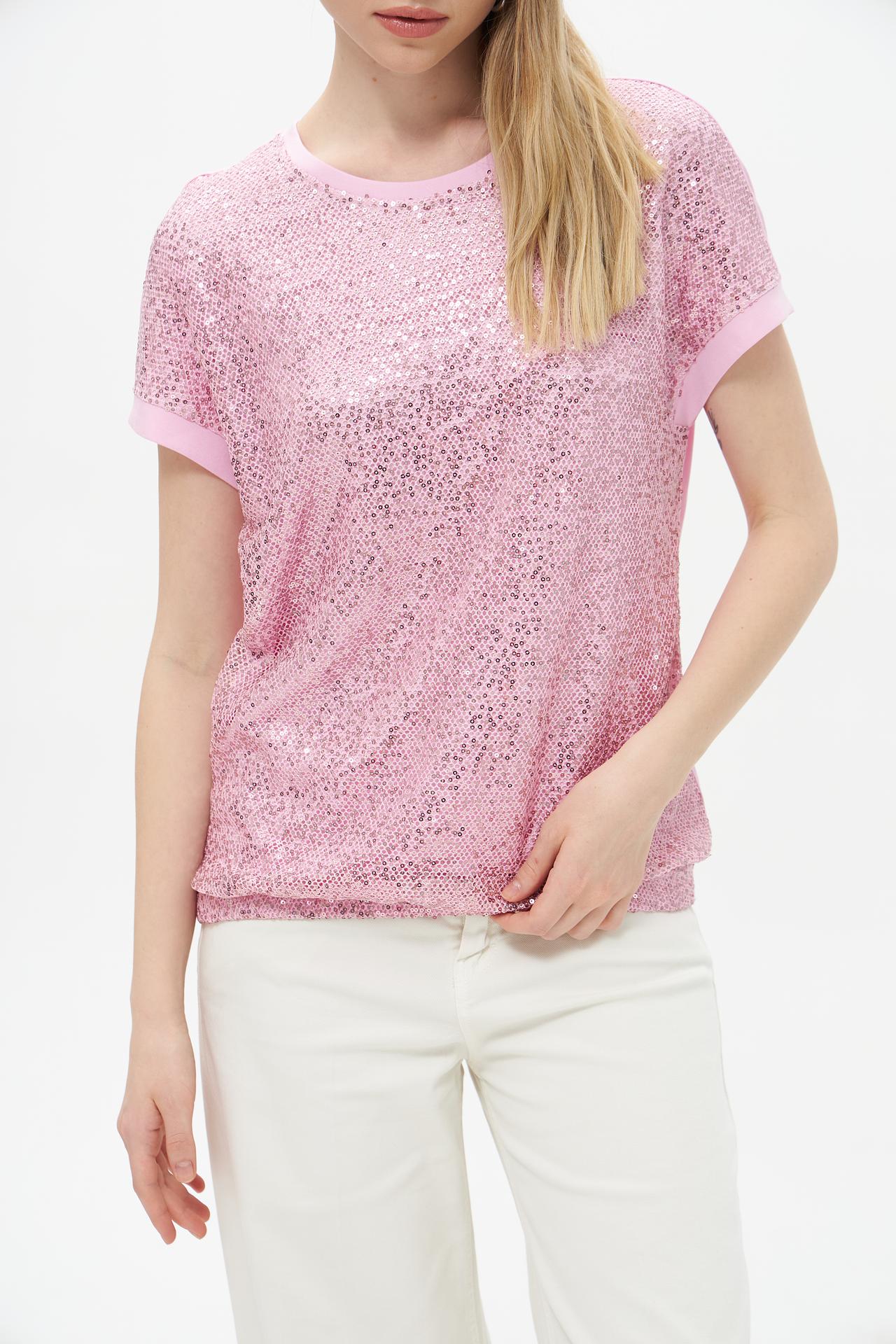 Очаровательная розовая футболка Rabe collection, выполненная из мягкой и приятной к телу вискозы с добавлением эластана. Идеальный выбор для создания яркого и запоминающегося образа. Футболка украшена сверкающими пайетками, которые придают ей особый шарм и привлекательность.
