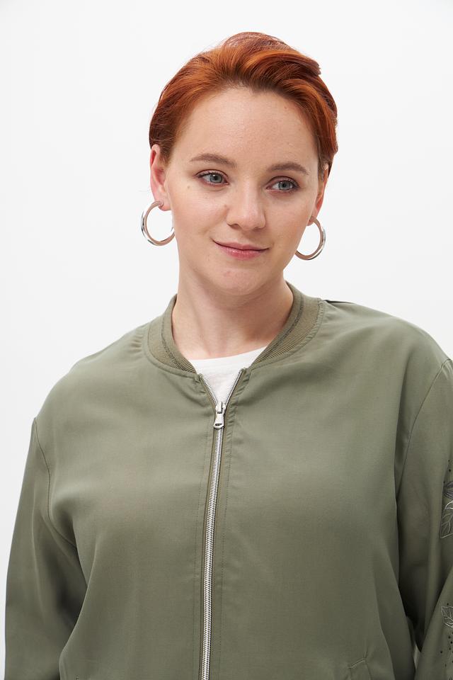 Жакет Rabe collection оливкового цвета – это стильная и удобная модель в стиле casual. Жакет имеет застежку-молнию, боковые карманы и декоративную вышивку на рукаве, что придает ему индивидуальность. Состав: лиоцел 100%