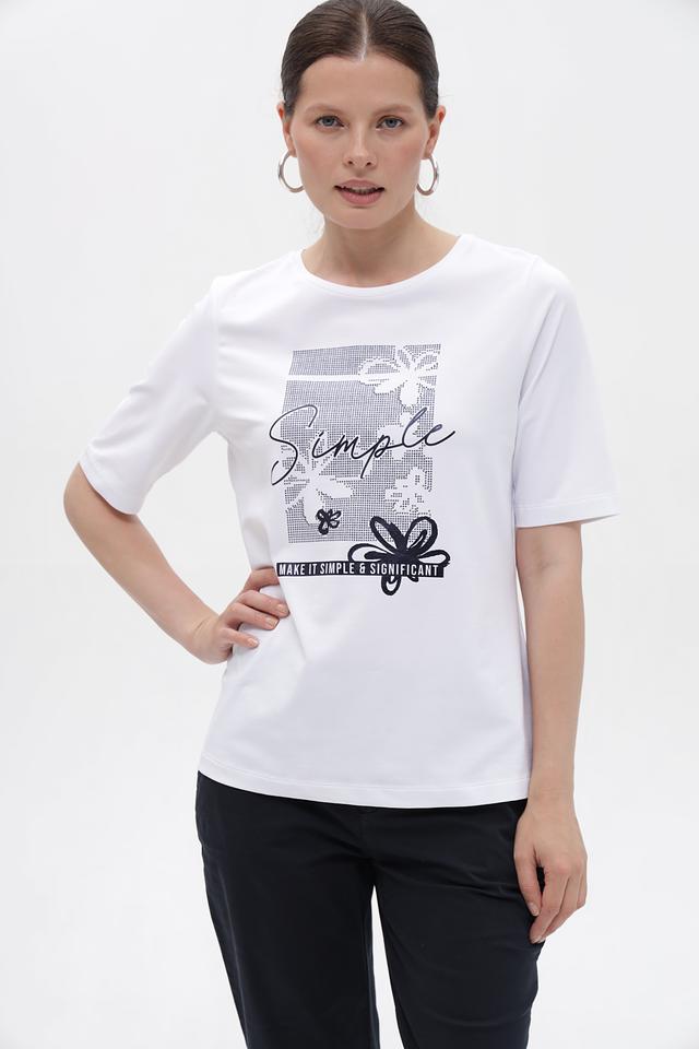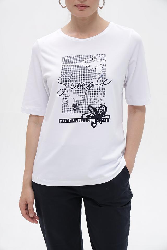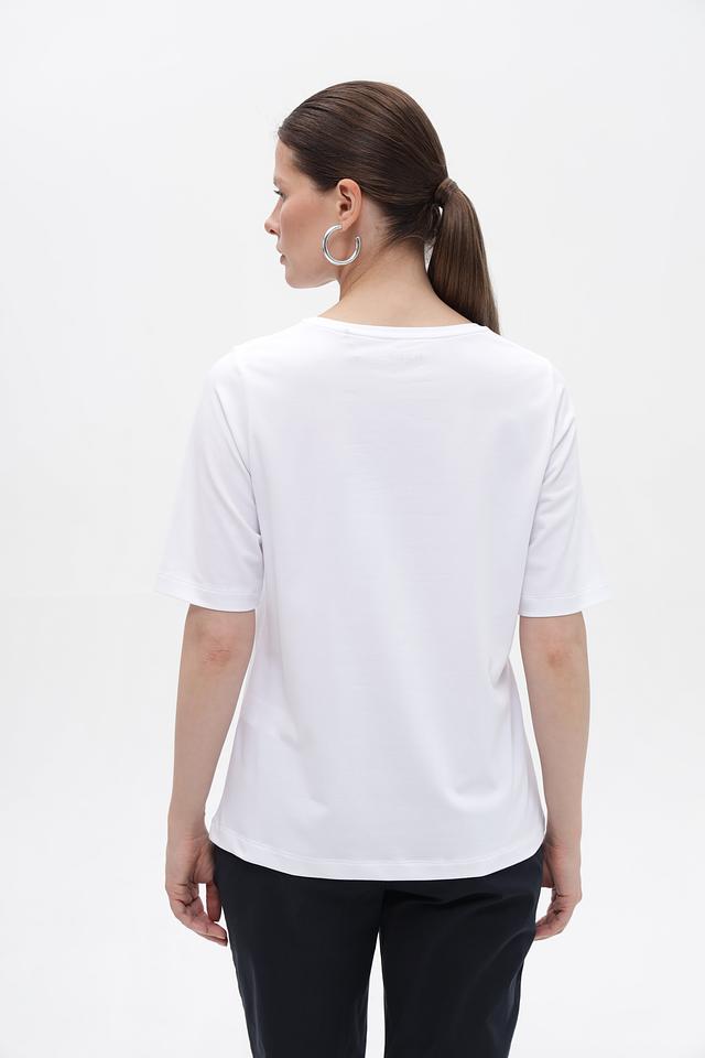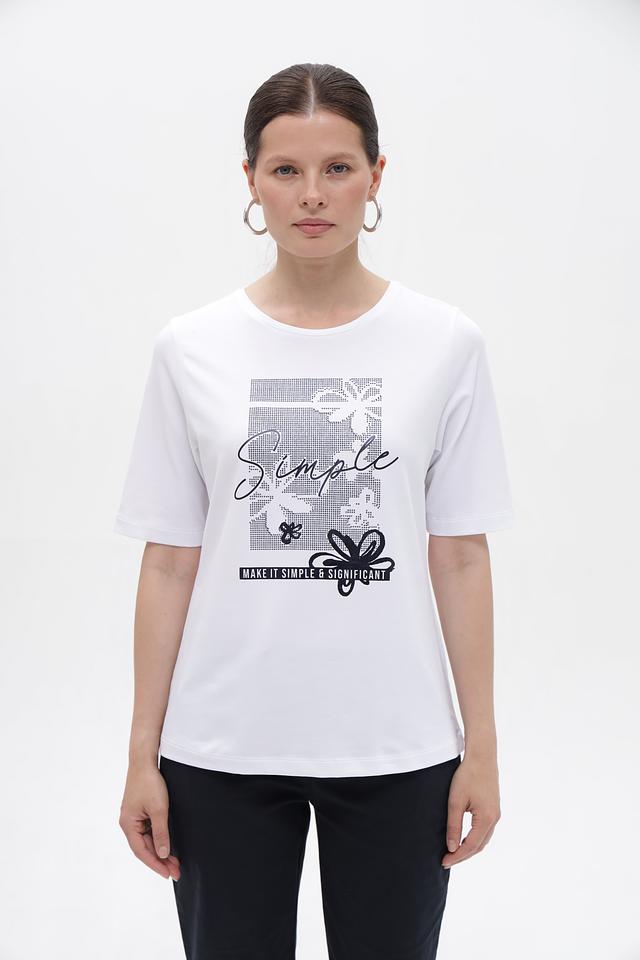 Женская футболка от бренда Rabe collection, выполненная в белом цвете. Модель имеет прямой, слегка свободный крой, который обеспечивает комфорт в носке.