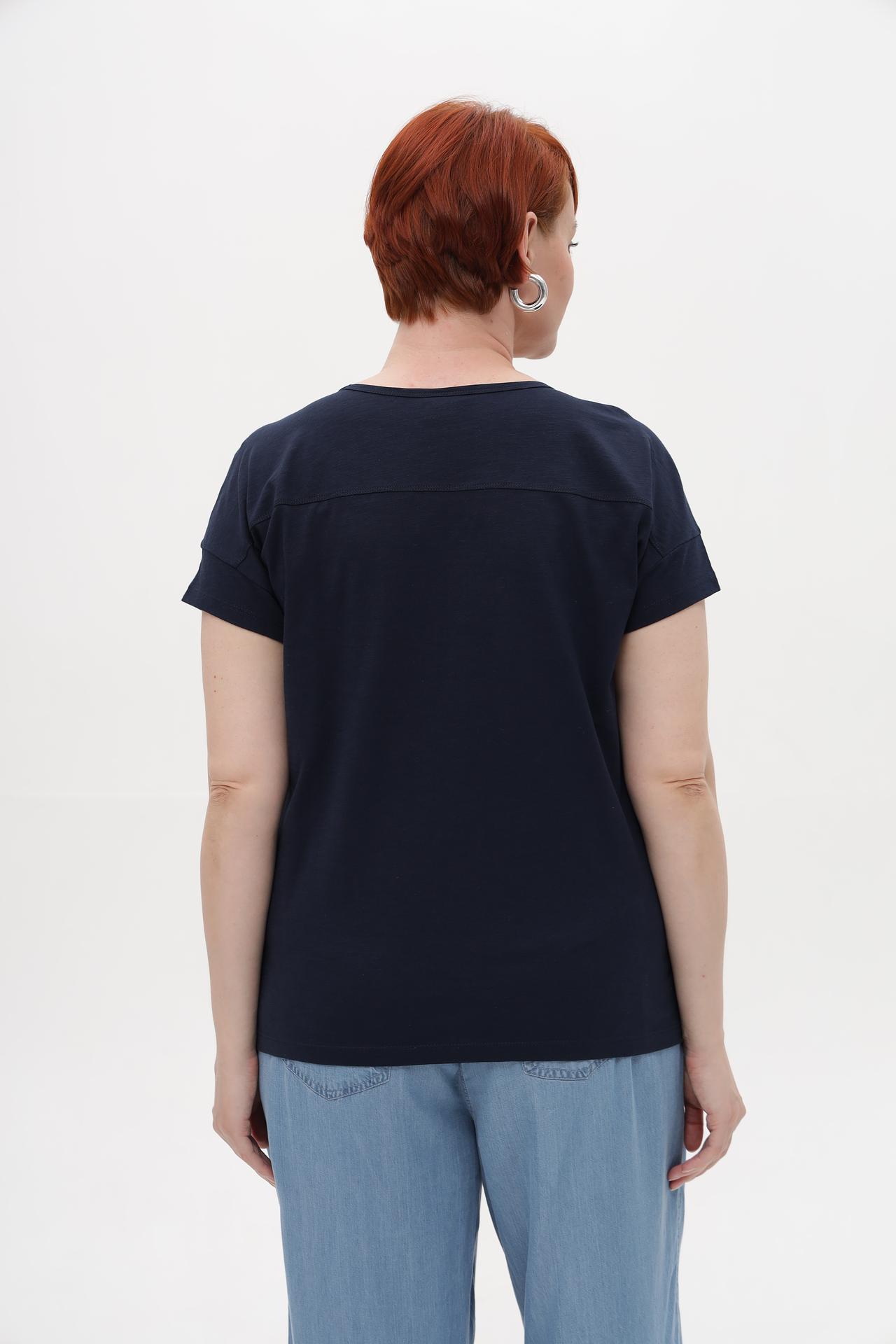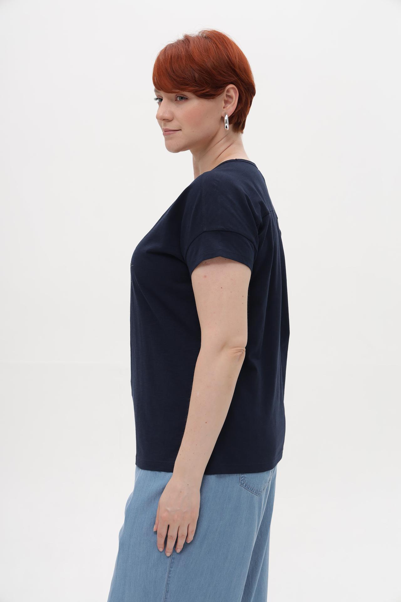 Футболка Rabe collection – это воплощение комфорта и современного стиля, созданное для вашего ежедневного гардероба. Идеальный выбор для тех, кто ценит качество и удобство. Благодаря классическому крою и универсальному темно-синему цвету, эта женская футболка легко интегрируется в любой повседневный образ, став базовой вещью в вашем гардеробе.