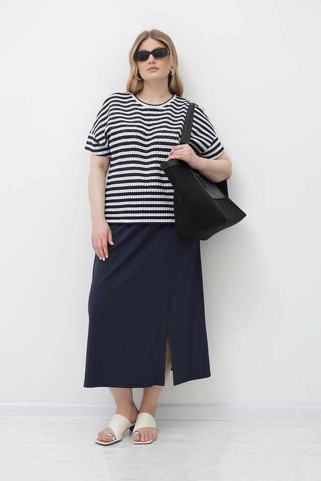 Такой состав обеспечивает мягкость, приятные тактильные ощущения, хорошую воздухопроницаемость и устойчивость к деформации. Футболка идеально подходит для повседневной носки, а также для создания стильных образов в сочетании с юбками, брюками или джинсами.