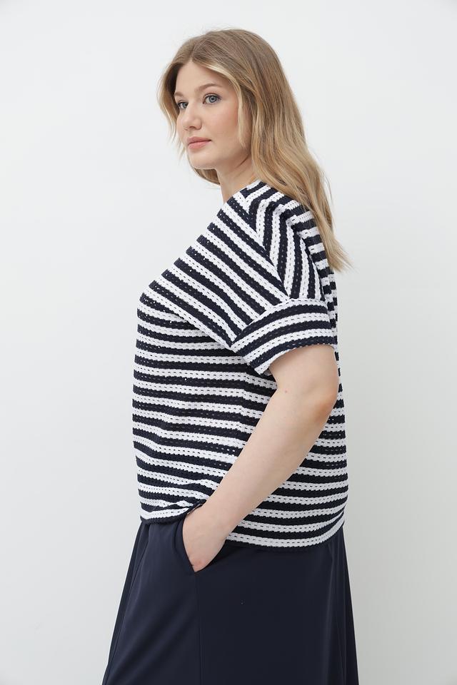 Эта стильная футболка от Rabe collection станет отличным дополнением к вашему гардеробу. Она выполнена в классическом сине-белом цвете с полосатым рисунком, который всегда актуален.