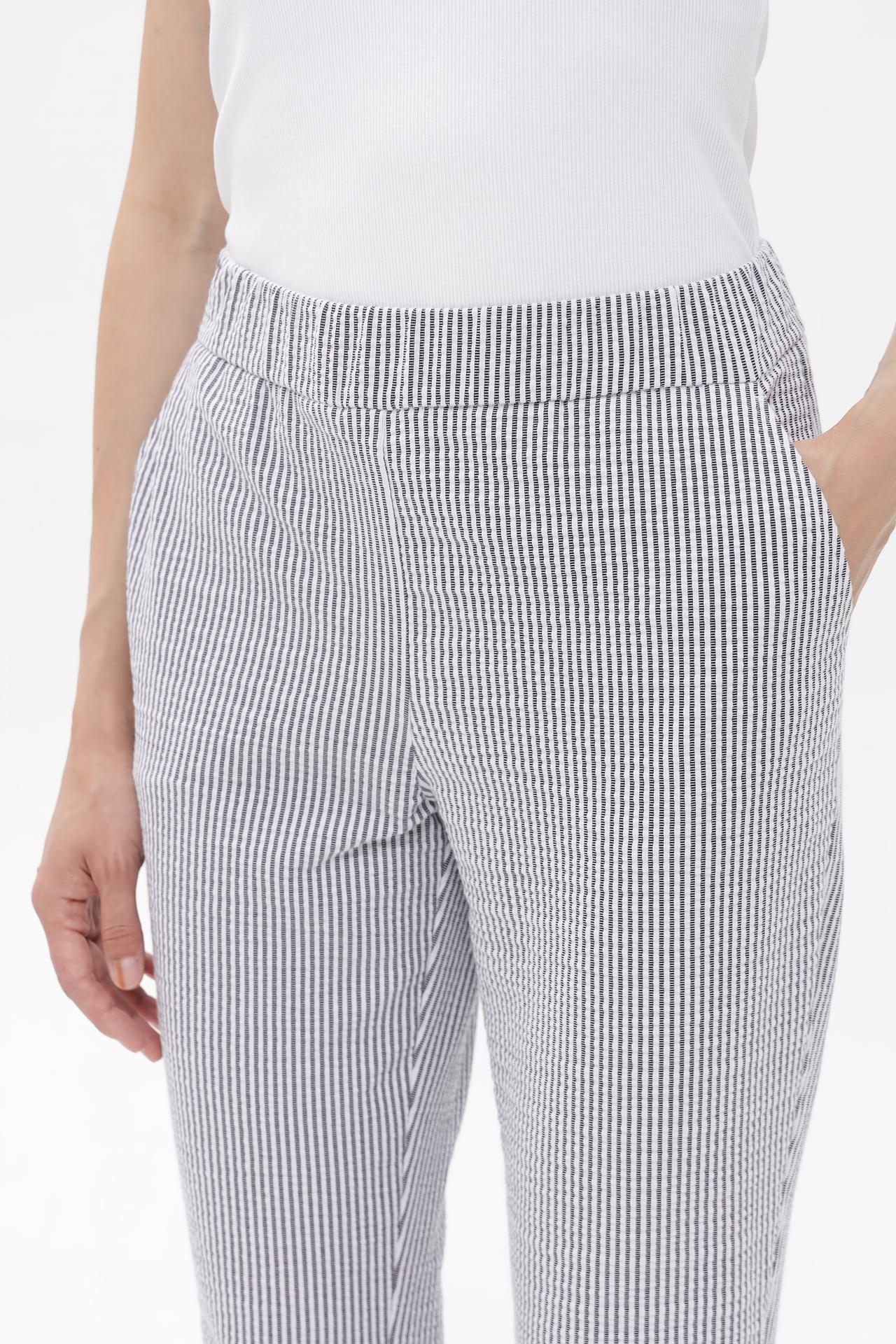 Элегантные брюки от Rabe collection станут универсальной основой вашего гардероба. Модель в мелкую вертикальную полоску прекрасно подходит для создания как деловых, так и повседневных образов. Практичный крой и комфортная посадка обеспечивают удобство в течение всего дня.