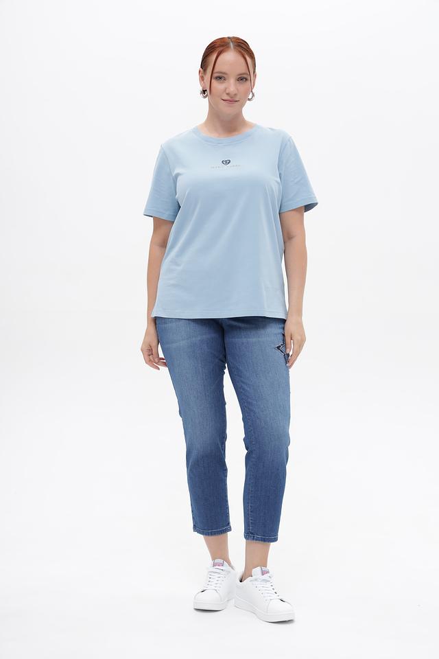 Укороченные джинсы Rabe collection голубого цвета с оригинальной вышивкой в виде звезд. Изготовлены из хлопка с добавлением эластана для комфортной посадки. Состав: хлопок 99%, эластан 1%