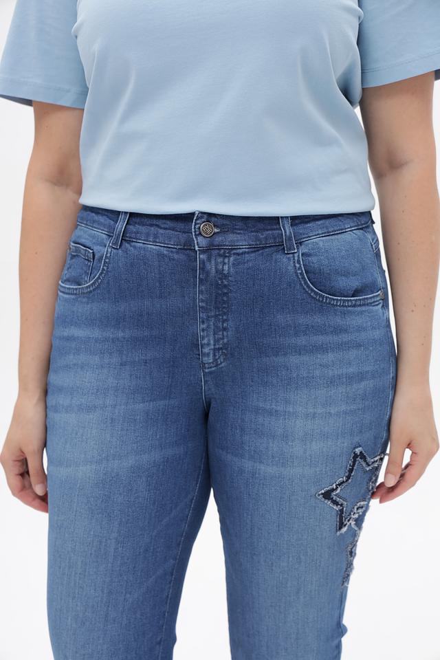 Дизайн джинсов дополнен стильной вышивкой в виде звезд, расположенной на штанине. Классическая пятикарманная конструкция включает удобные передние и задние карманы.