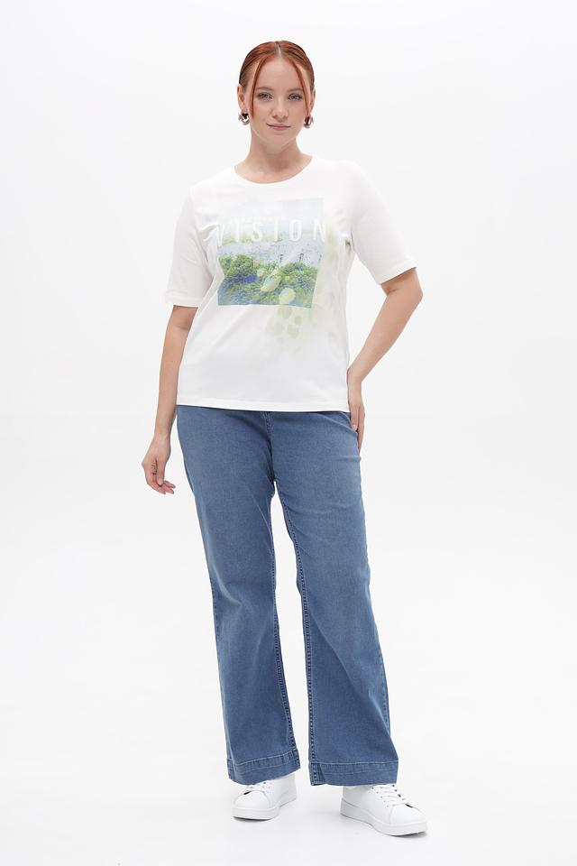 Белая футболка от Rabe collection с ярким принтом в стиле импрессионизм. Изготовлена из мягкого хлопка с добавлением эластана для комфорта и хорошей посадки. Состав: хлопок 95%, эластан 5%