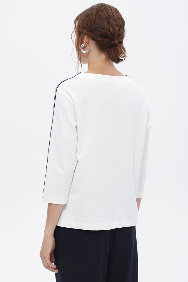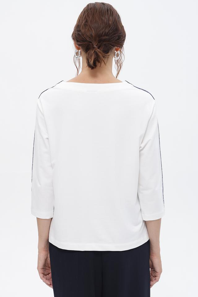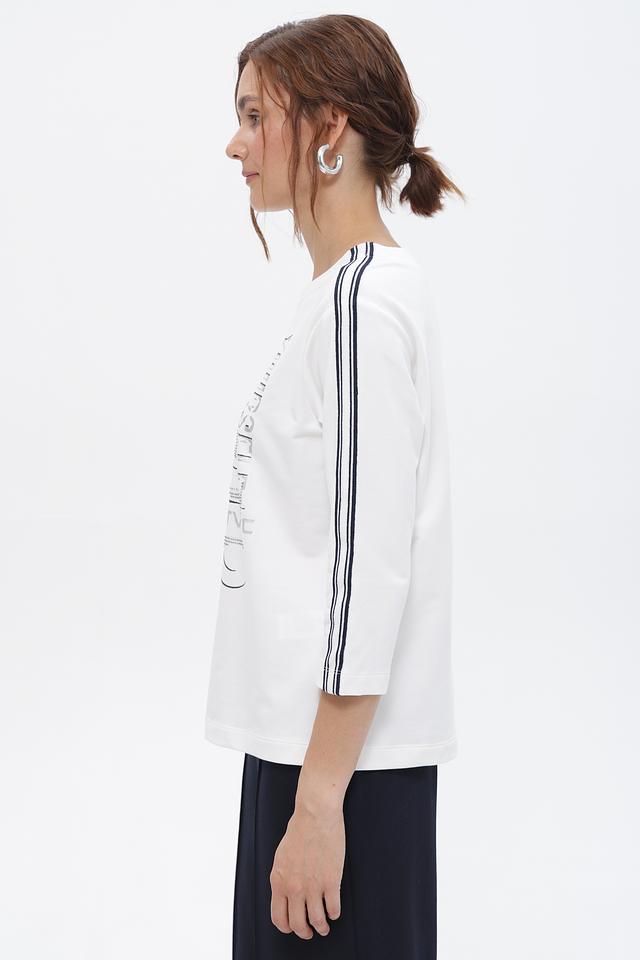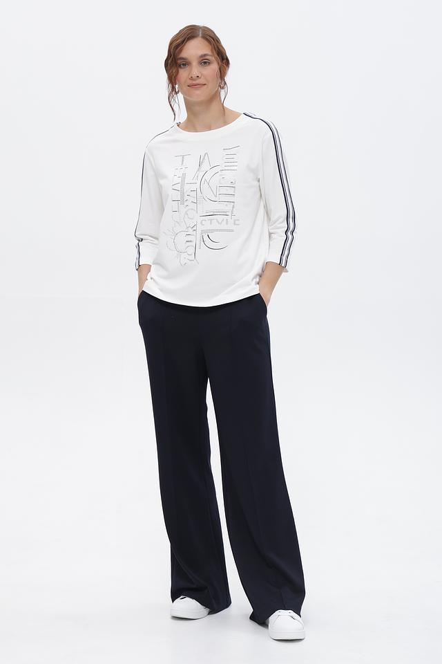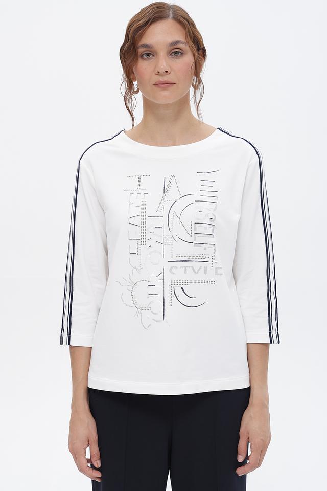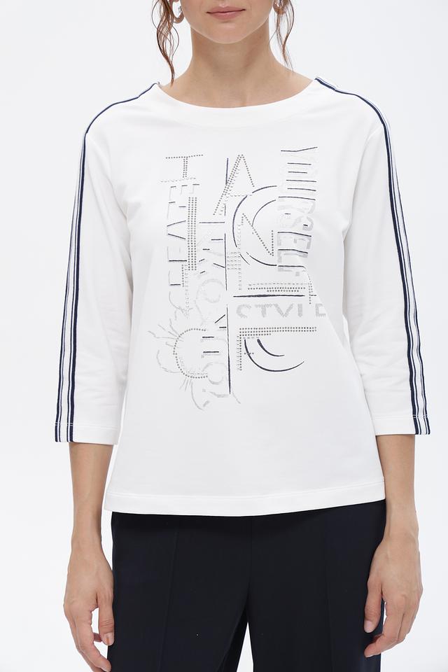 Белая футболка Rabe collection с оригинальным декором и контрастными полосками. Изготовлена из мягкого и приятного к телу сочетания хлопка, модала и эластана. Состав: хлопок 48%, модал 48%, эластан 4%