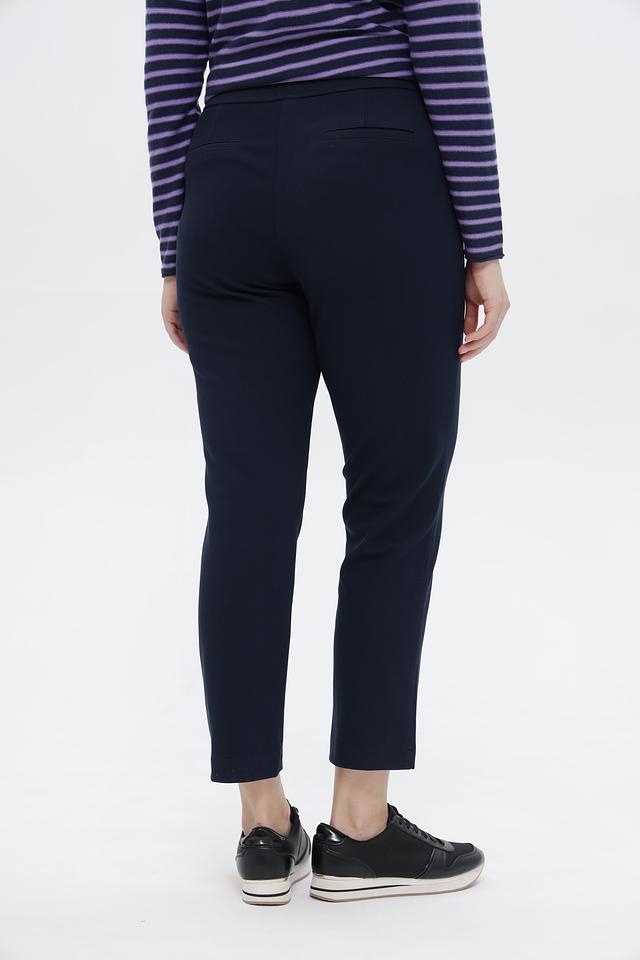 Классические укороченные брюки от бренда Rabe collection станут незаменимым элементом вашего гардероба. Модель выполнена в спокойном синем цвете, легко сочетающемся с различными топами и блузками.