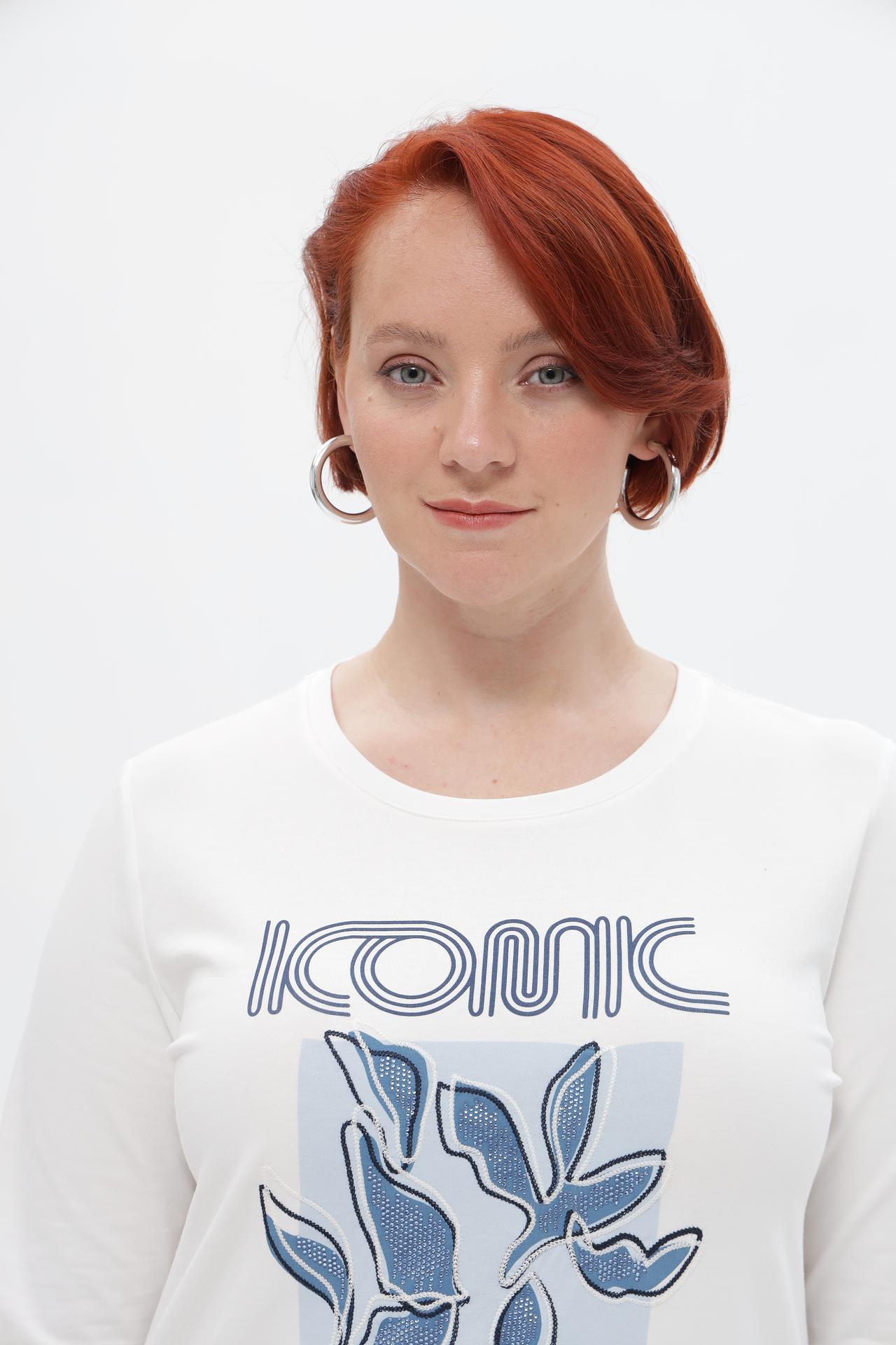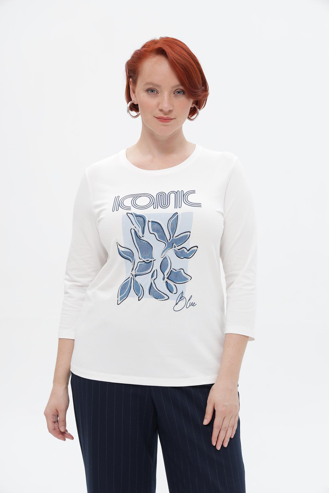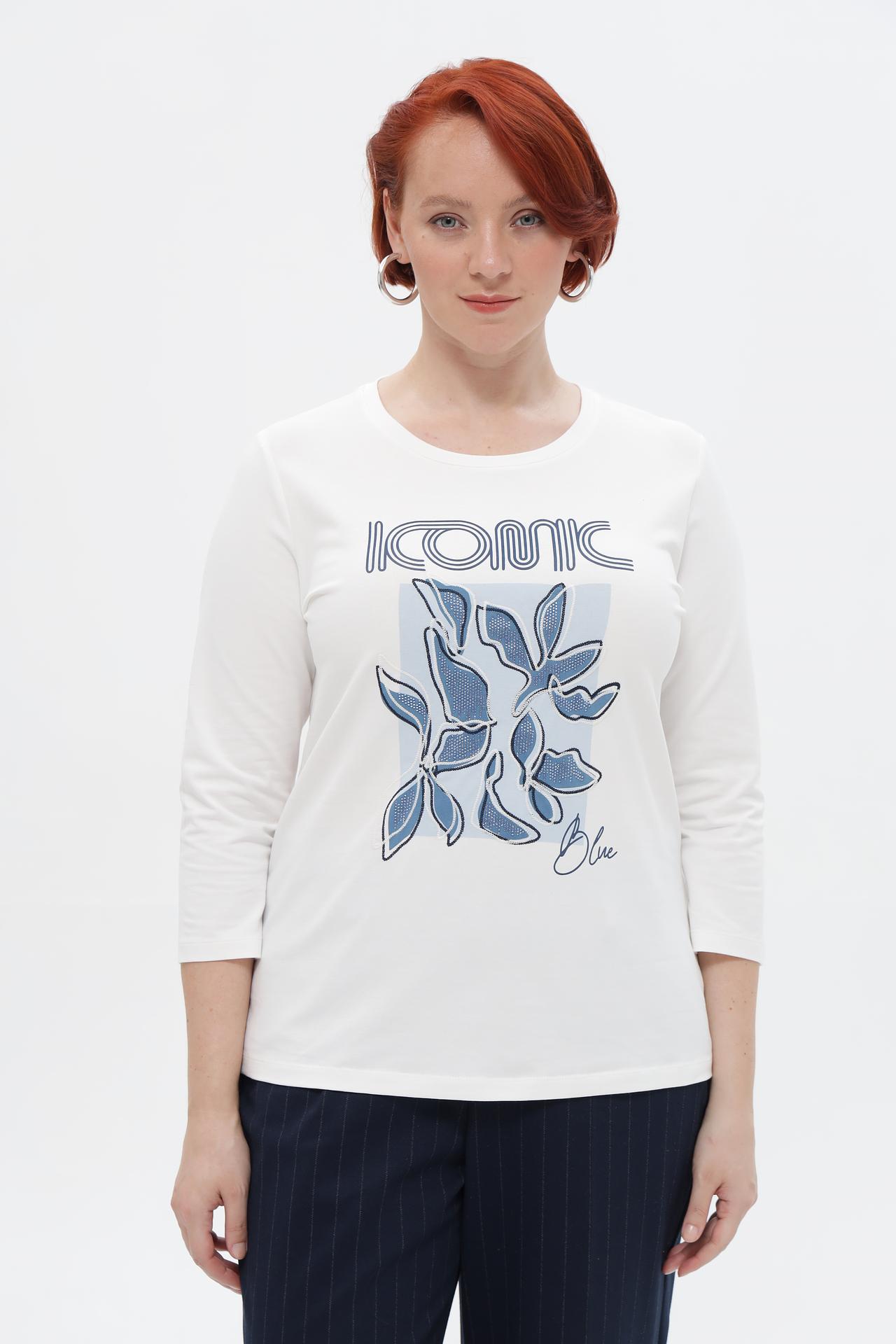 Элегантная женская футболка от Rabe collection — идеальный выбор для создания стильных и комфортных образов. Безупречное качество и продуманный дизайн делают эту футболку незаменимой в вашем гардеробе. Оригинальный принт с растительными мотивами и надписью «ICONIC BLUE» добавит изюминку любому наряду.