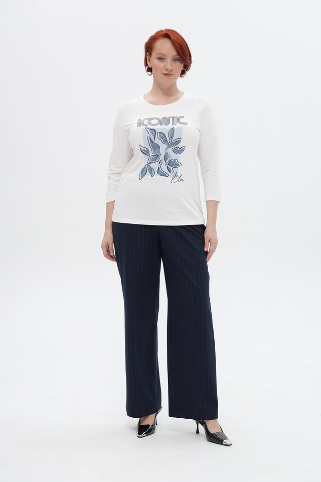 Футболка имеет прямой крой, короткий рукав 3/4 и круглый вырез горловины. Передняя часть украшена ярким принтом Iconic в голубых тонах, придающим изделию индивидуальность.