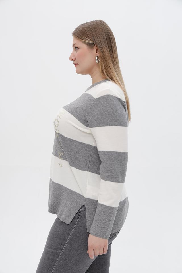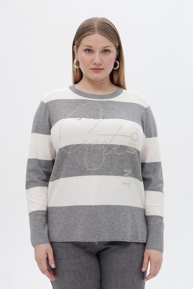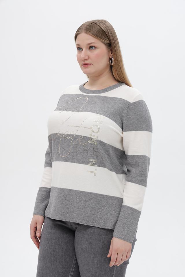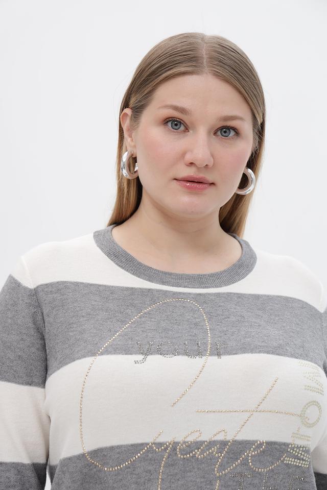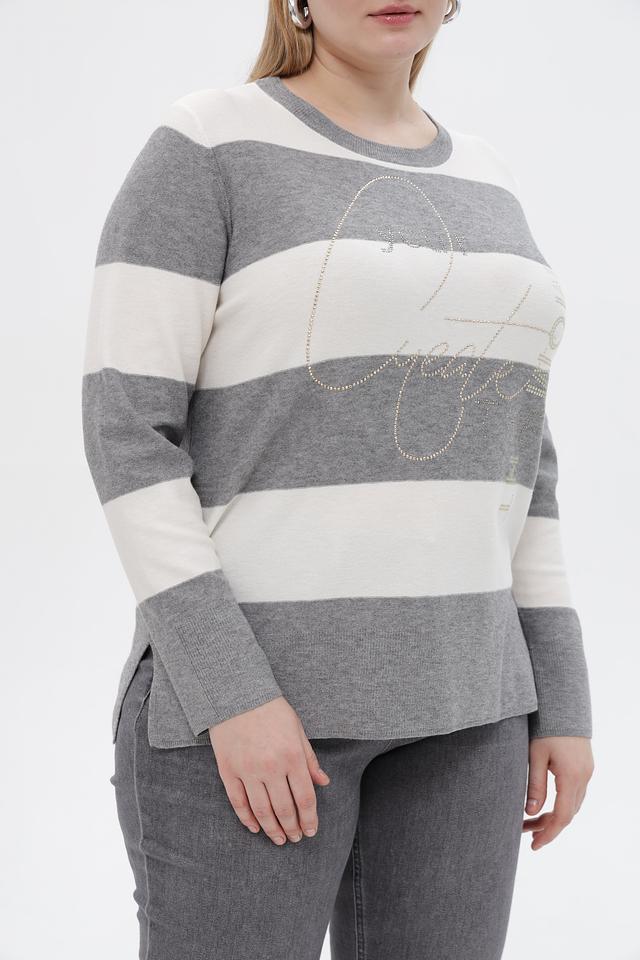 Серый пуловер Rabe collection с горизонтальной полоской и декоративной вышивкой. Изготовлен из мягкого трикотажа с добавлением вискозы, полиэстера и полиамида для комфорта и практичности. Состав: полиэстер 50%, вискоза 30%, полиамид 20%