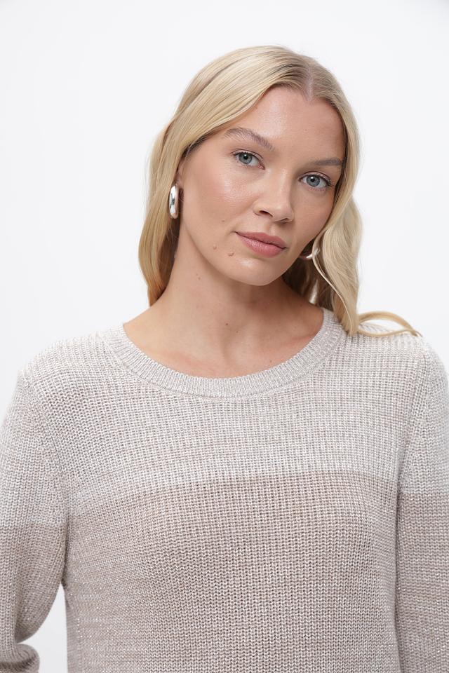 Состав пуловера: 47% хлопок, 47% полиакрил, 6% металлизированная нить. Это сочетание обеспечивает мягкость, тепло и лёгкий уход за изделием. Пуловер станет отличным выбором для создания повседневных образов.