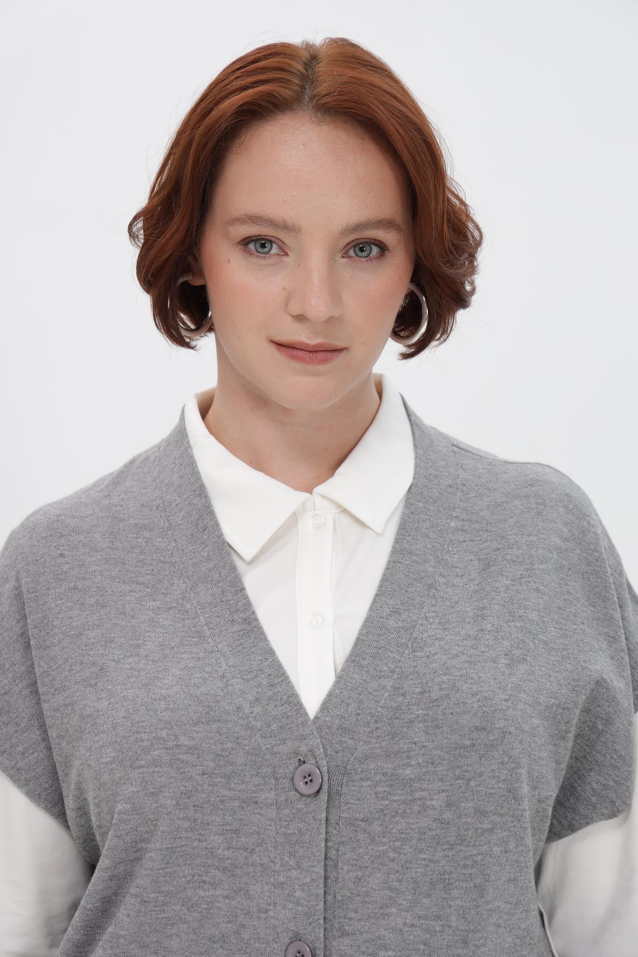 - Цвет: Классический серый цвет делает жилет универсальным и легко комбинируемым элементом гардероба.