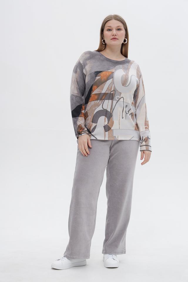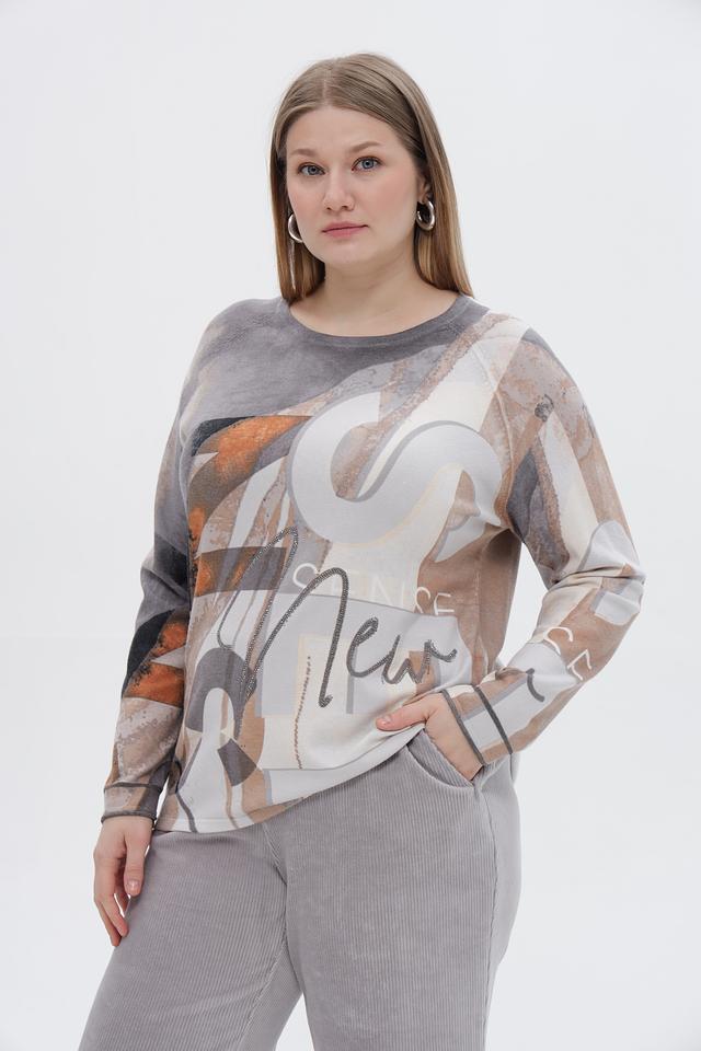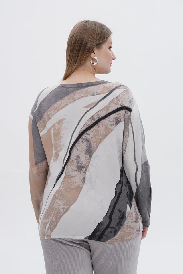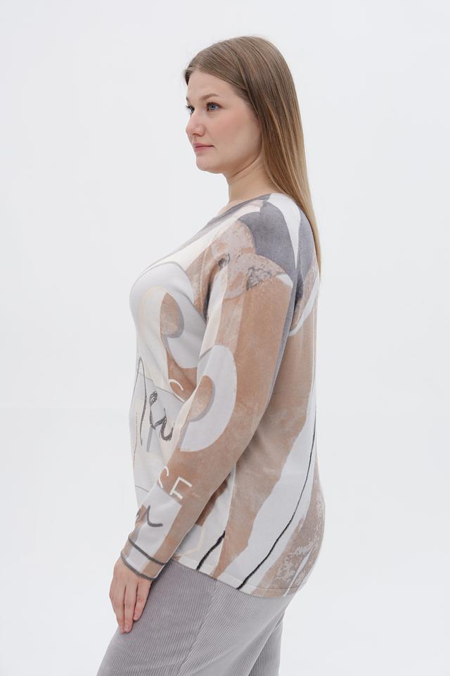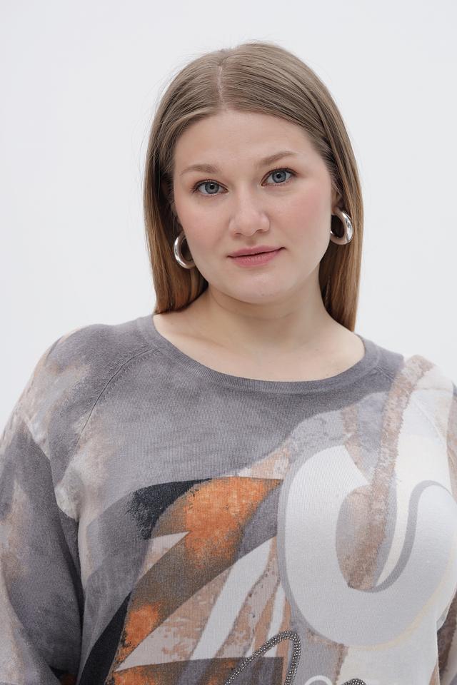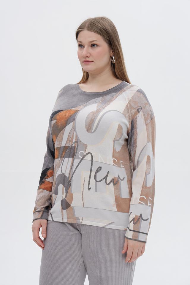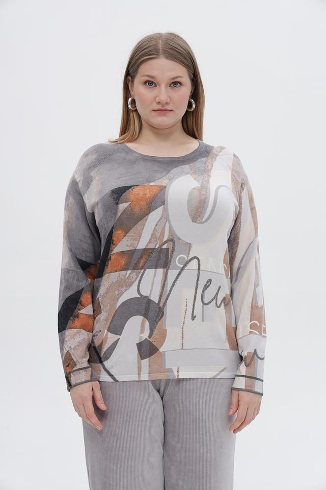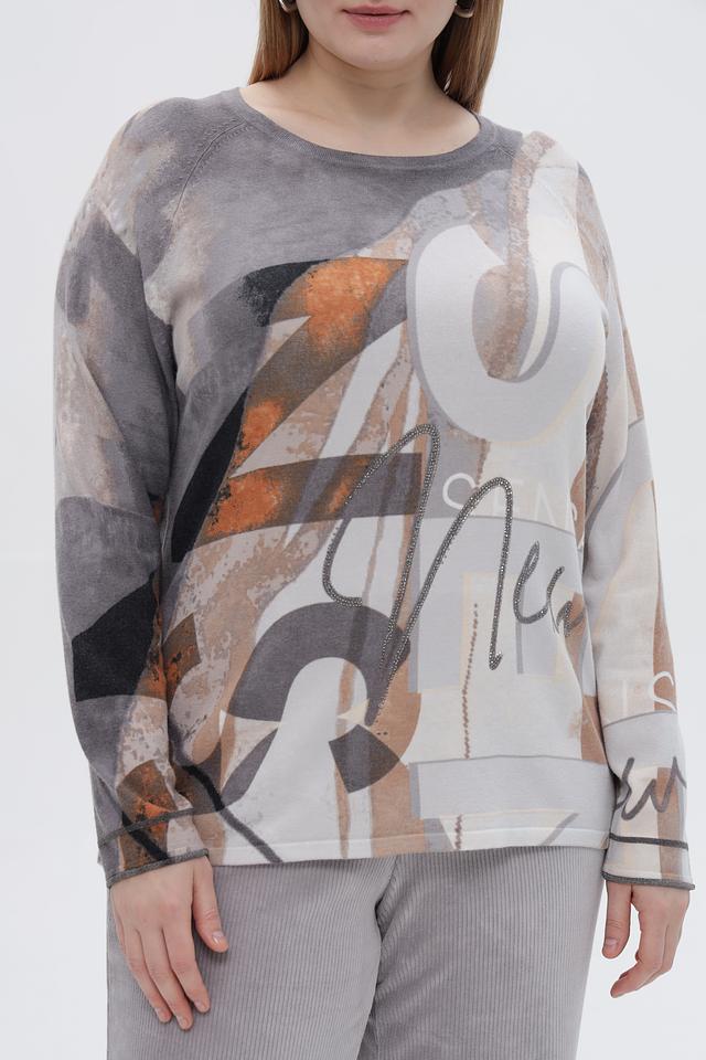 Стильный пуловер от бренда Rabe collection станет ярким акцентом вашего образа. Модель выполнена в сером цвете и украшена оригинальным абстрактным принтом, сочетающим в себе оттенки коричневого, бежевого и белого.