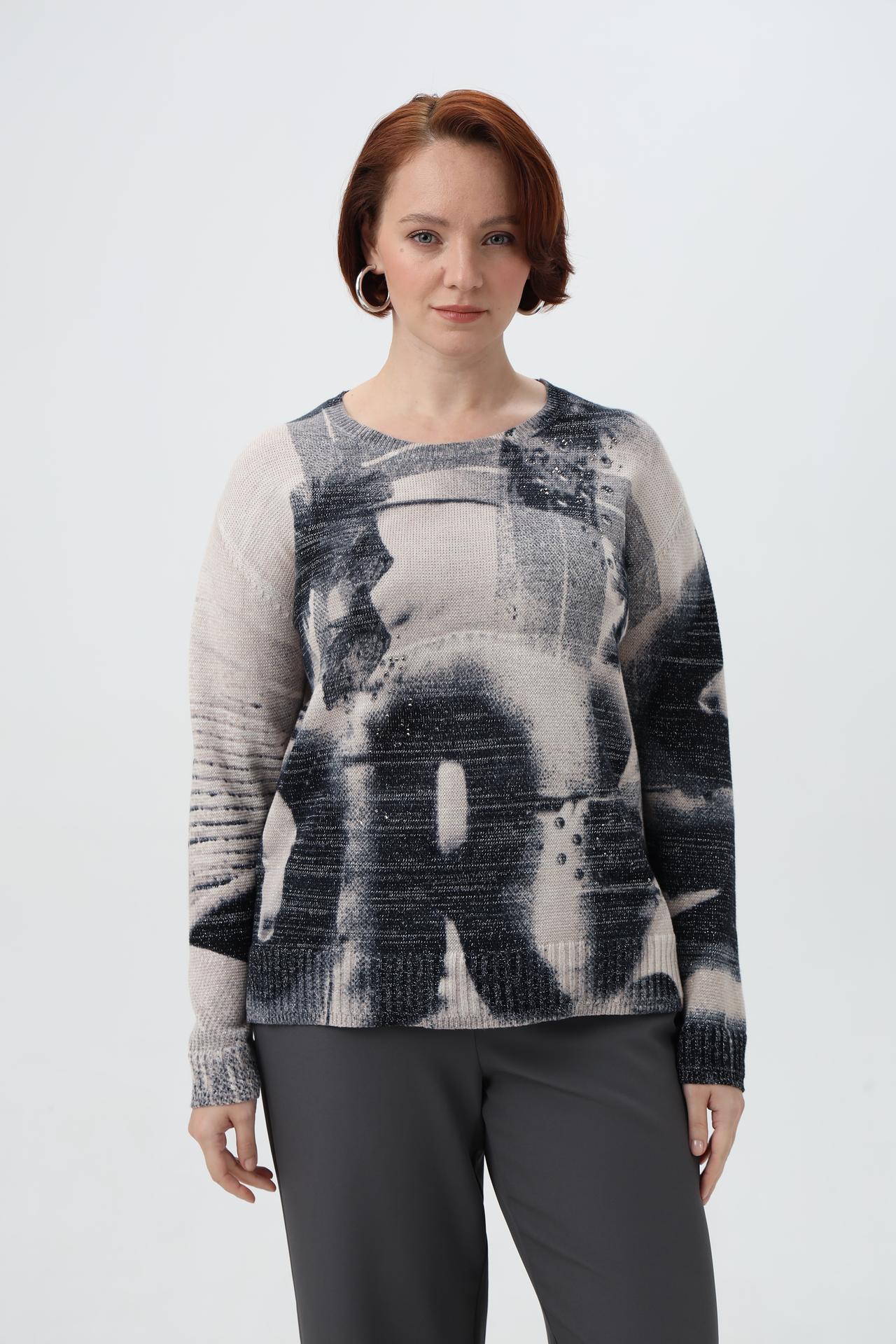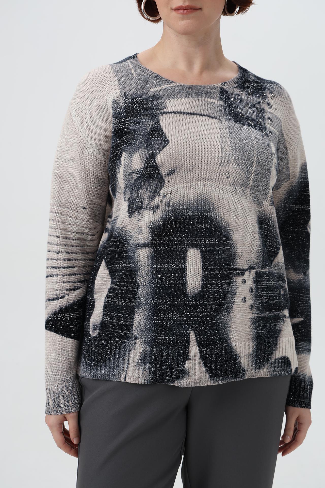 Пуловер Rabe collection бежево-серый с принтом