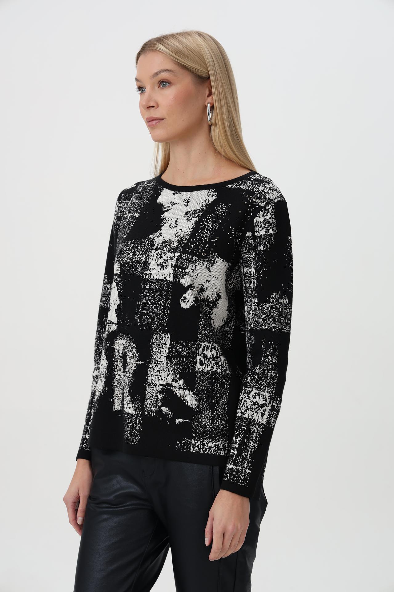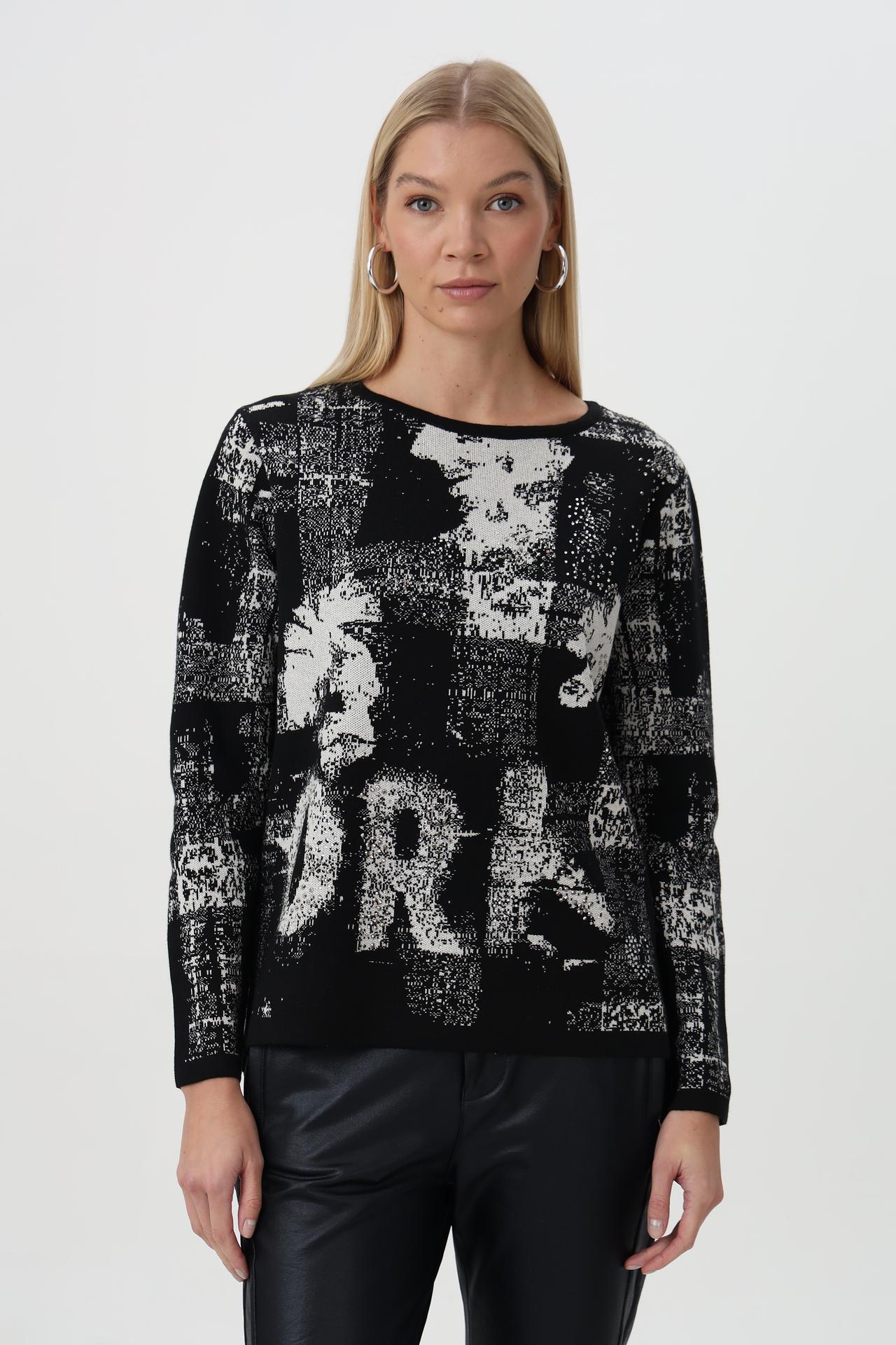 Эффектный пуловер от Rabe collection – идеальный выбор для создания стильных и современных образов. Оригинальный черно-белый принт с элементами текста и графики делает эту модель по-настоящему уникальной. Пуловер станет ярким акцентом в вашем гардеробе, подчеркивая индивидуальность и чувство стиля.