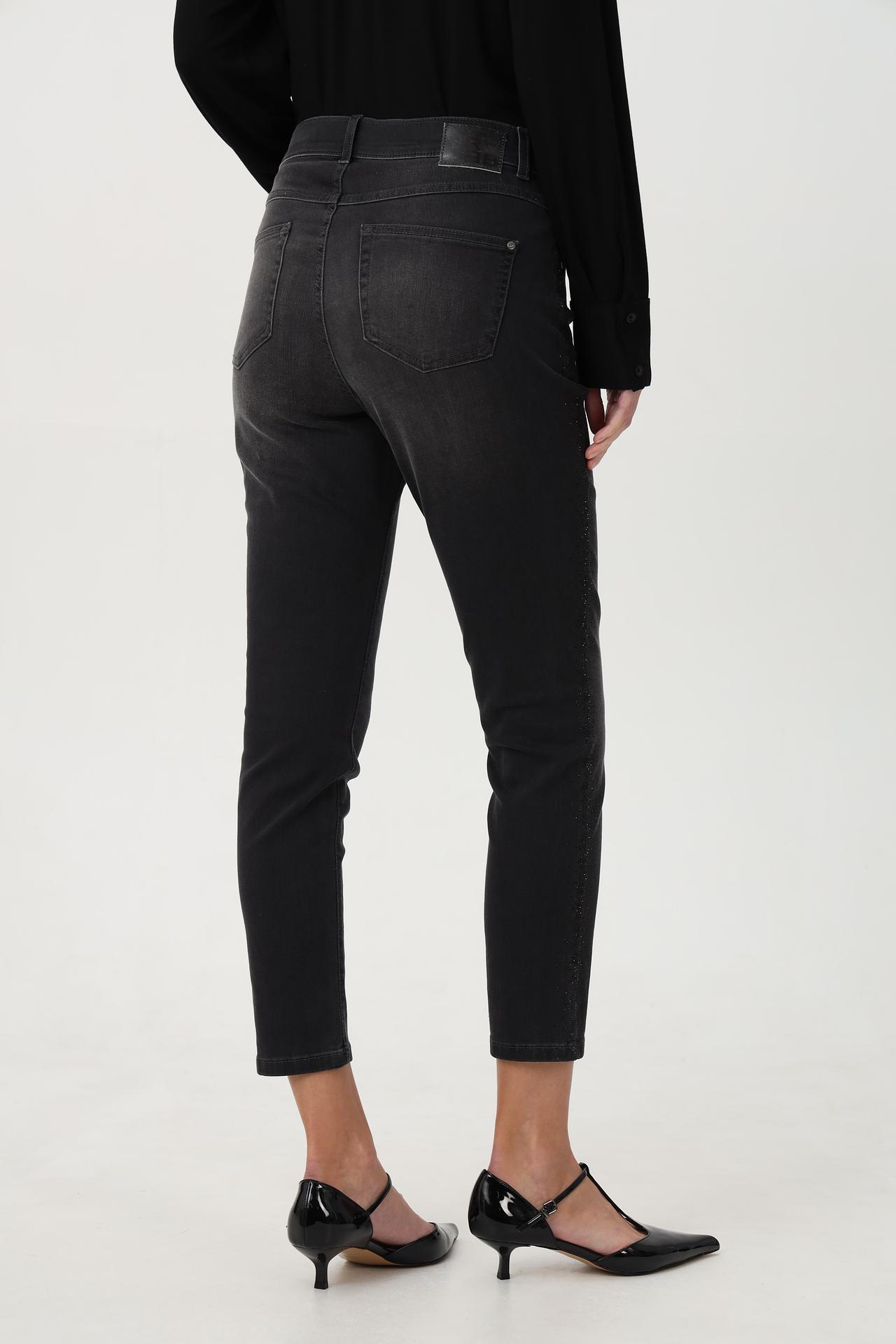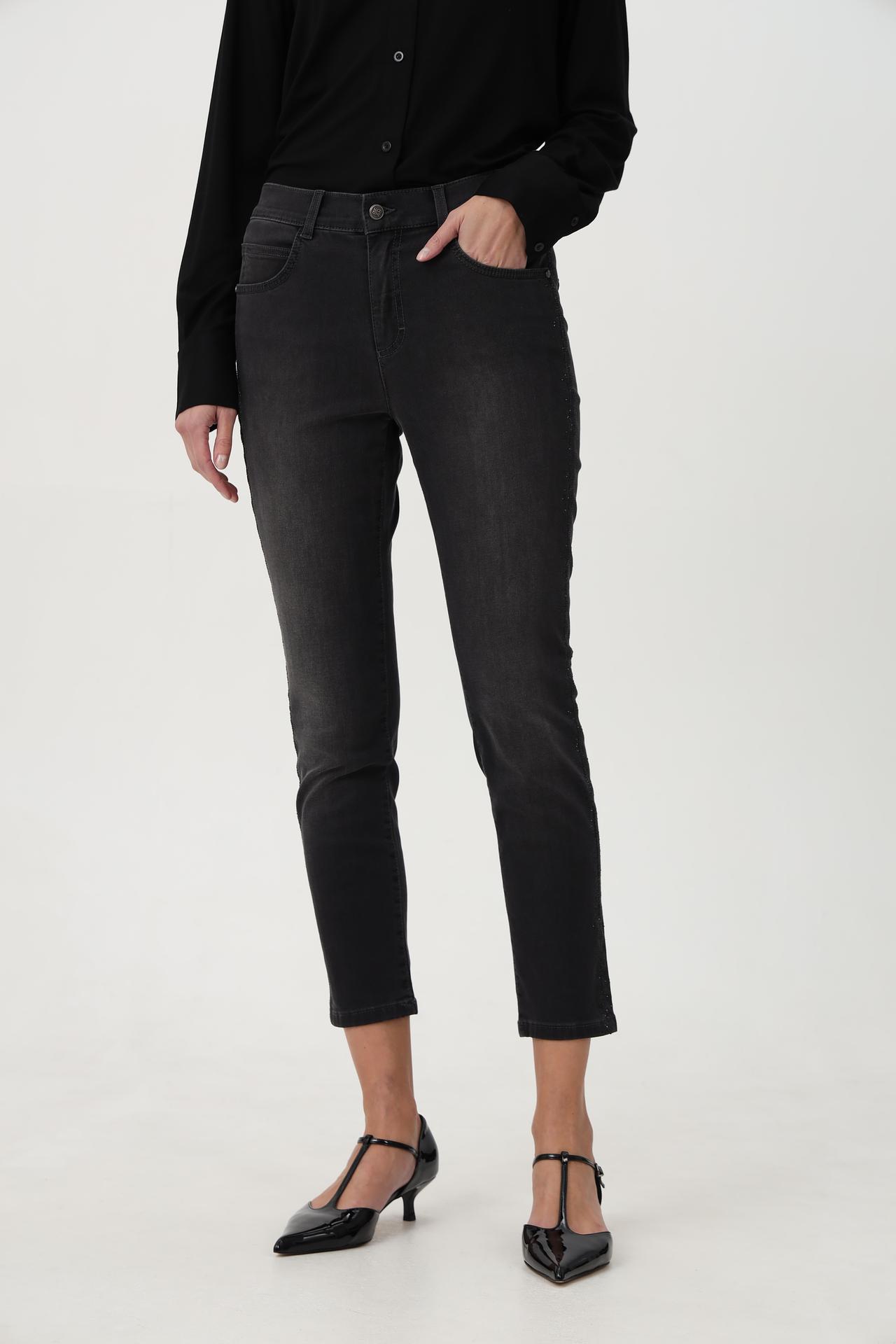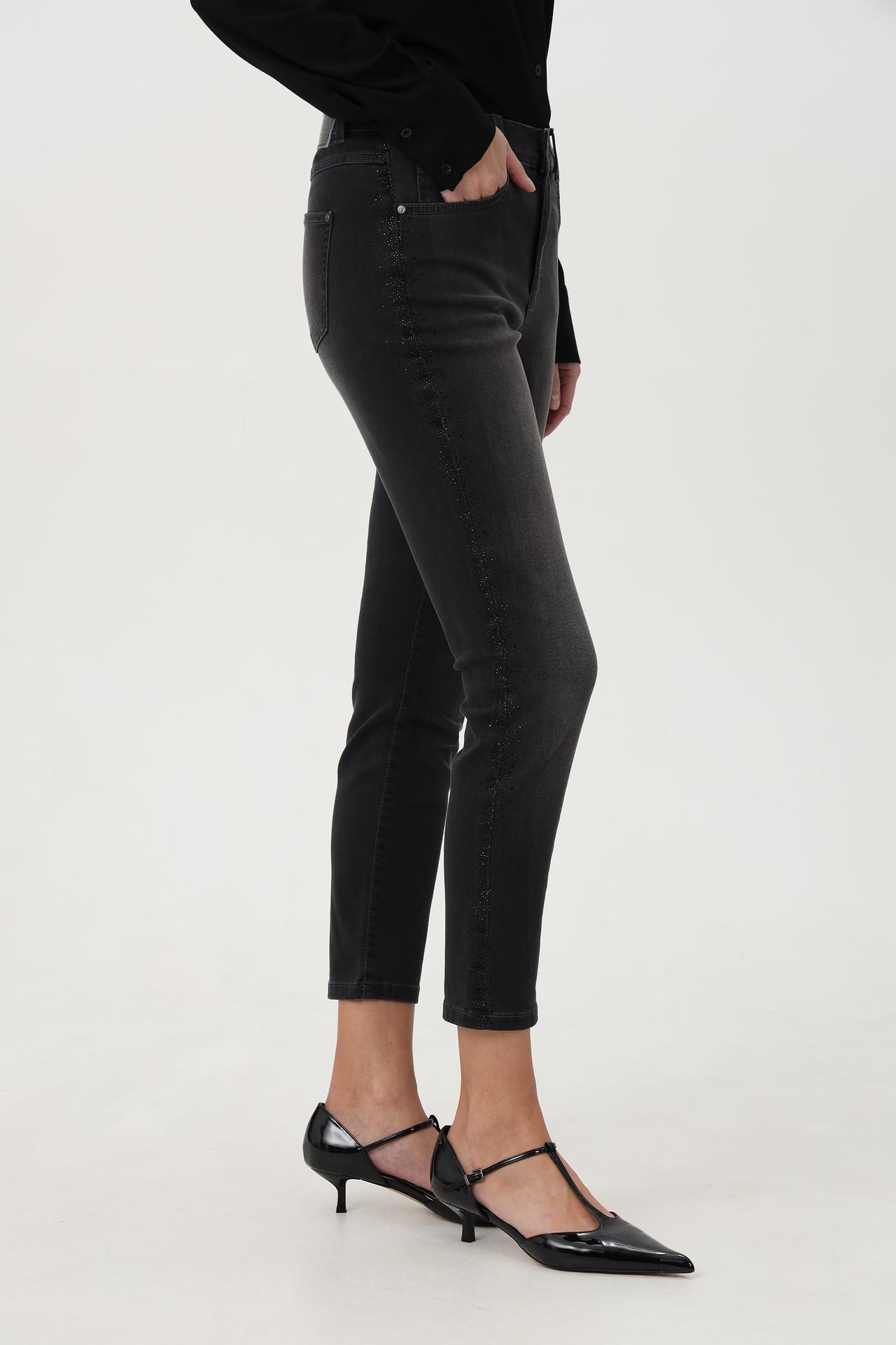 - Детали: Эффектная декоративная отделка вдоль бокового шва. Элегантный акцент, который привносит в образ нотку роскоши и утонченности, делая джинсы особенными.