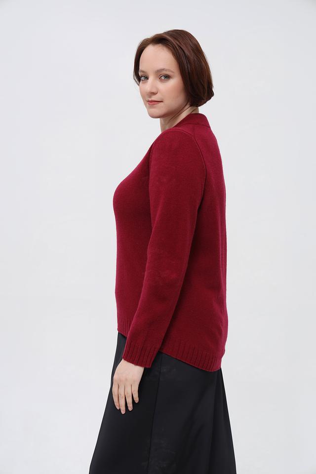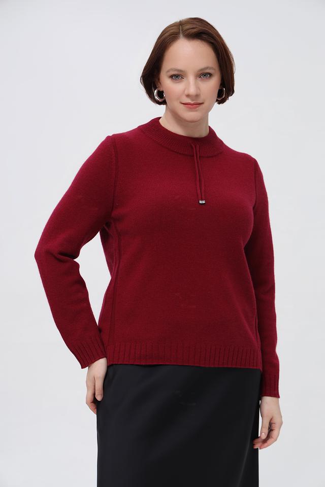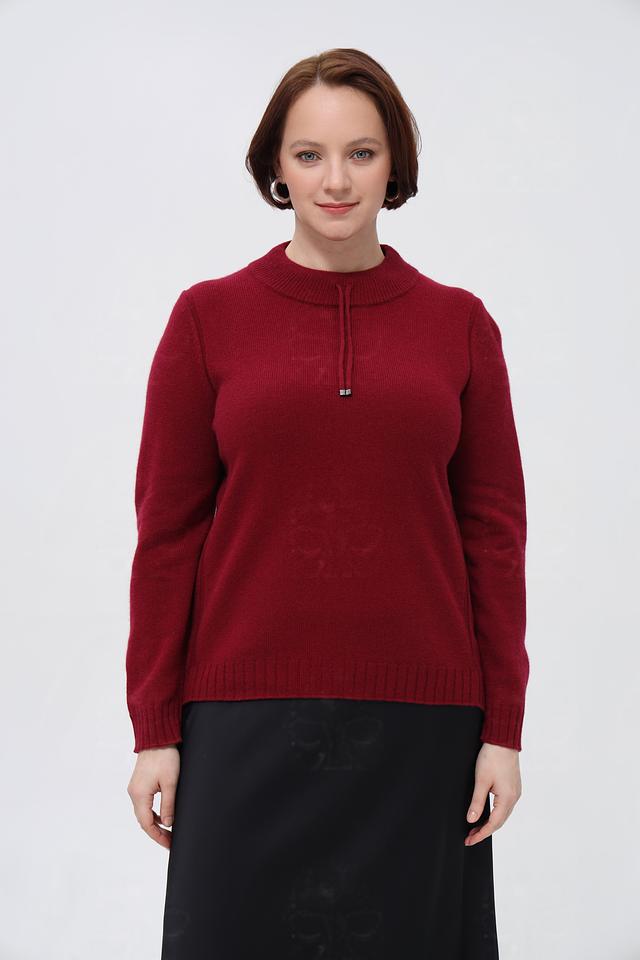 Бордовый пуловер от Rabe collection – это удобная и стильная модель с воротником-стойкой и декоративным шнурком. Изготовлен из мягкого полиамида, обеспечивающего комфорт в носке. Идеально сочетается с юбками и брюками. Состав: шерсть 50%, полиамид 30%, модал 20%
