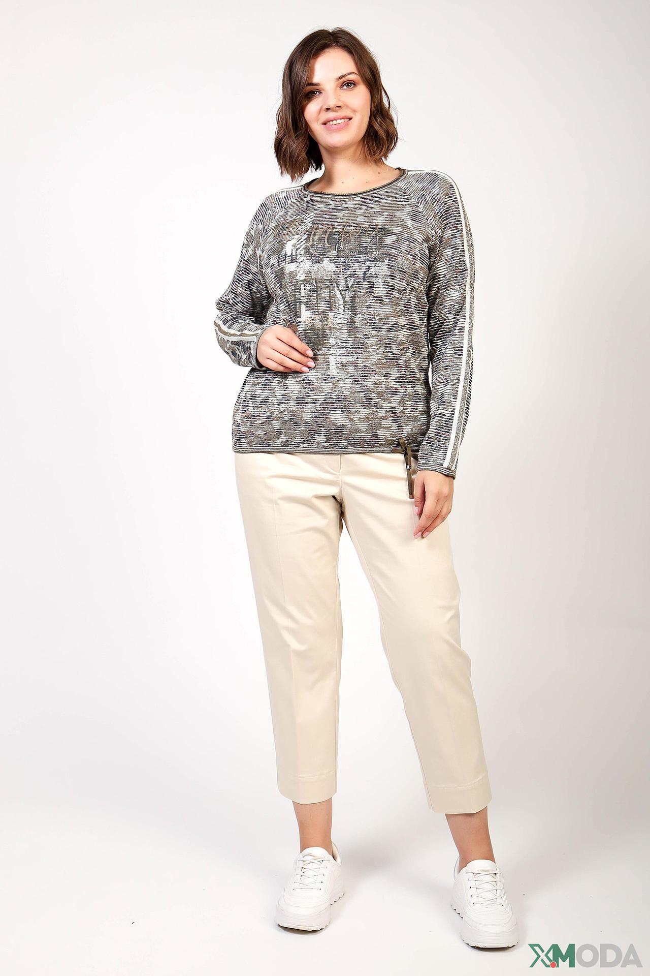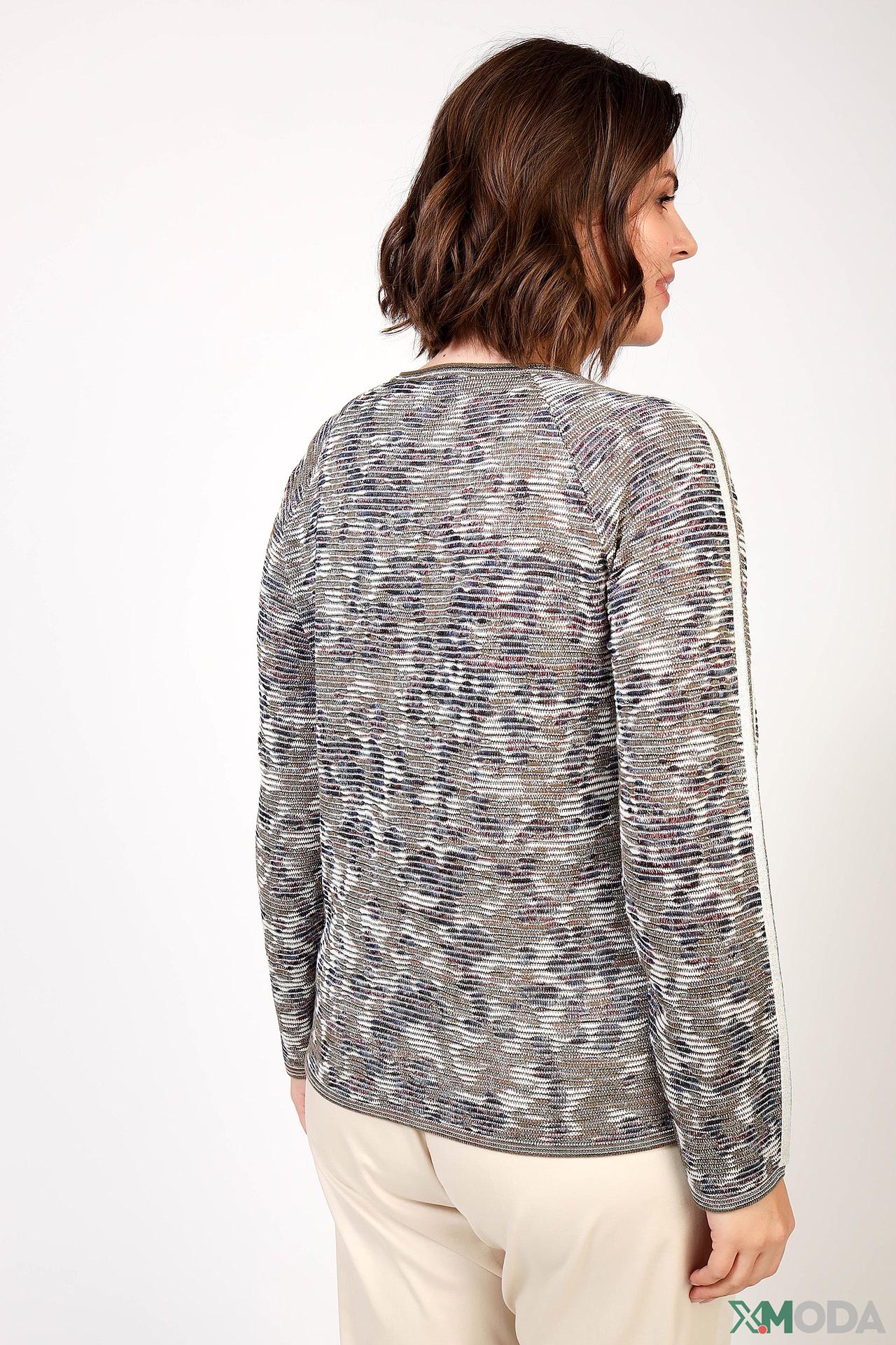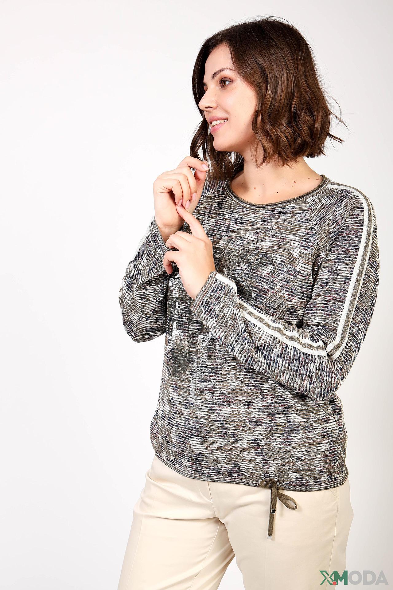 Стильный и комфортный женский пуловер из коллекции Rabe. Мягкая и приятная на ощупь ткань с оптимальным составом (30% хлопок, 30% полиакрил, 4% полиэстер, 36% вискоза) обеспечит комфорт в течение всего дня. Пуловер имеет прямой силуэт, круглый вырез горловины и длинные рукава, декорированные лампасами. Модель украшена оригинальным принтом.