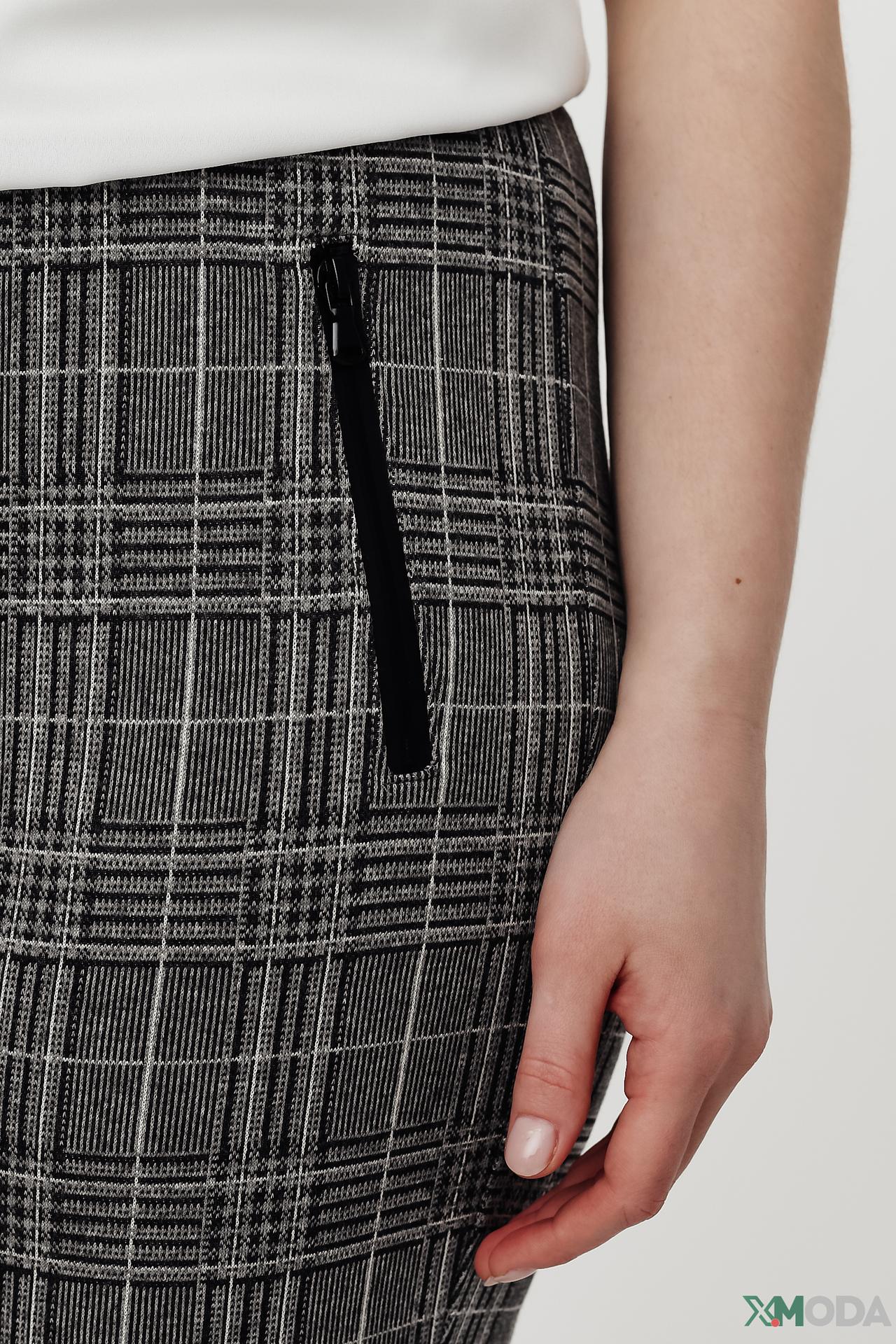 - Дизайн: Классический клетчатый узор в серо-белой гамме выглядит сдержанно и благородно. Черные акценты в виде молний на карманах придают современный вид.