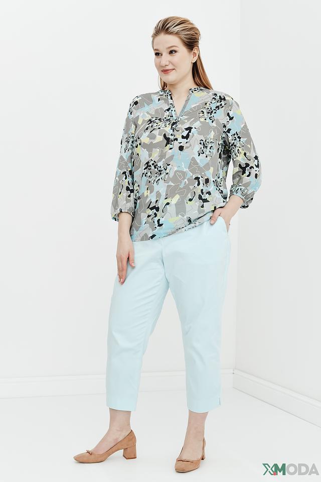 Блуза Rabe collection светло-голубого цвета с оригинальным абстрактным принтом. Модель выполнена из 100% вискозы, что обеспечивает комфорт и лёгкость в носке. Блуза имеет V-образный вырез и рукава 3/4. Состав: вискоза 100%