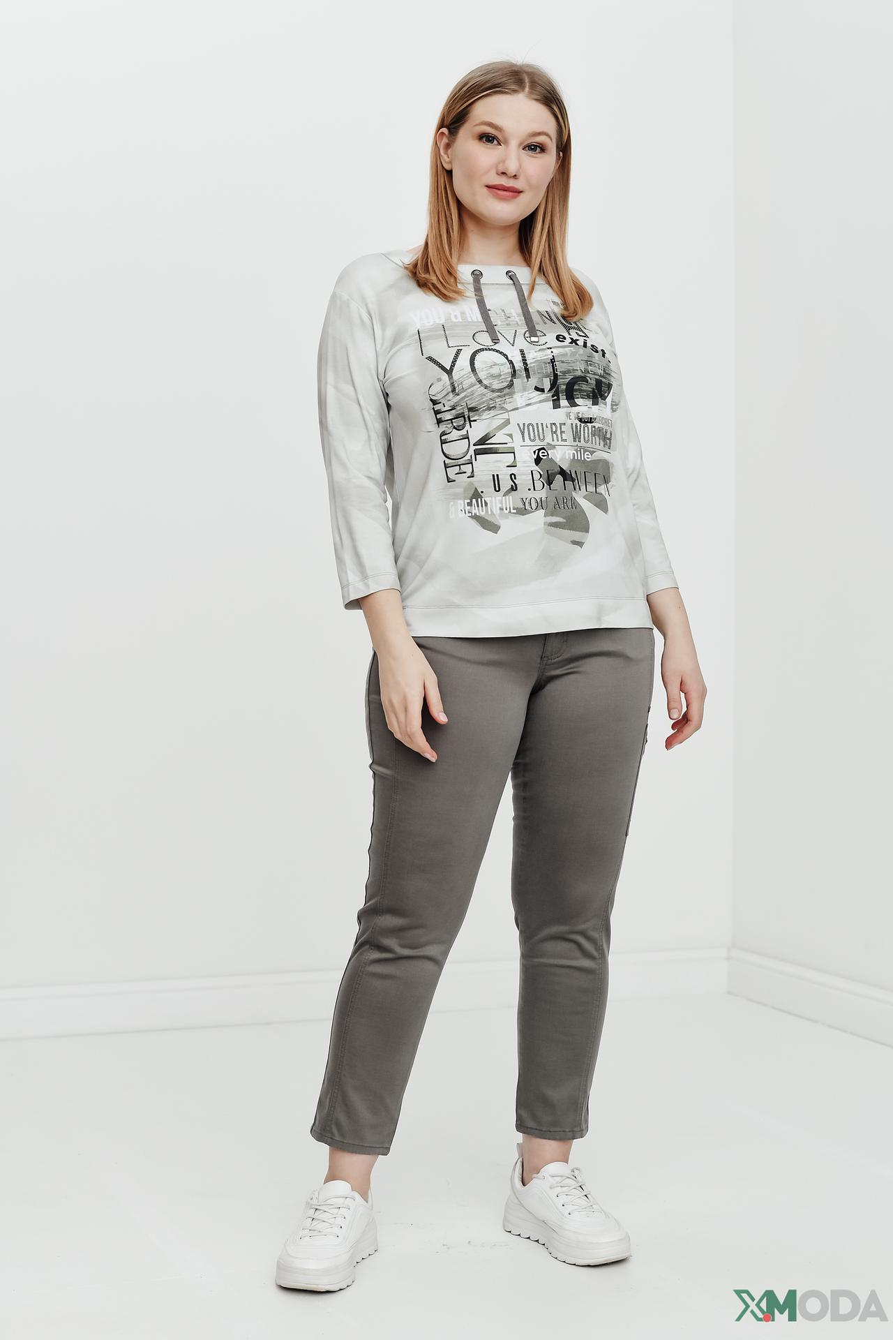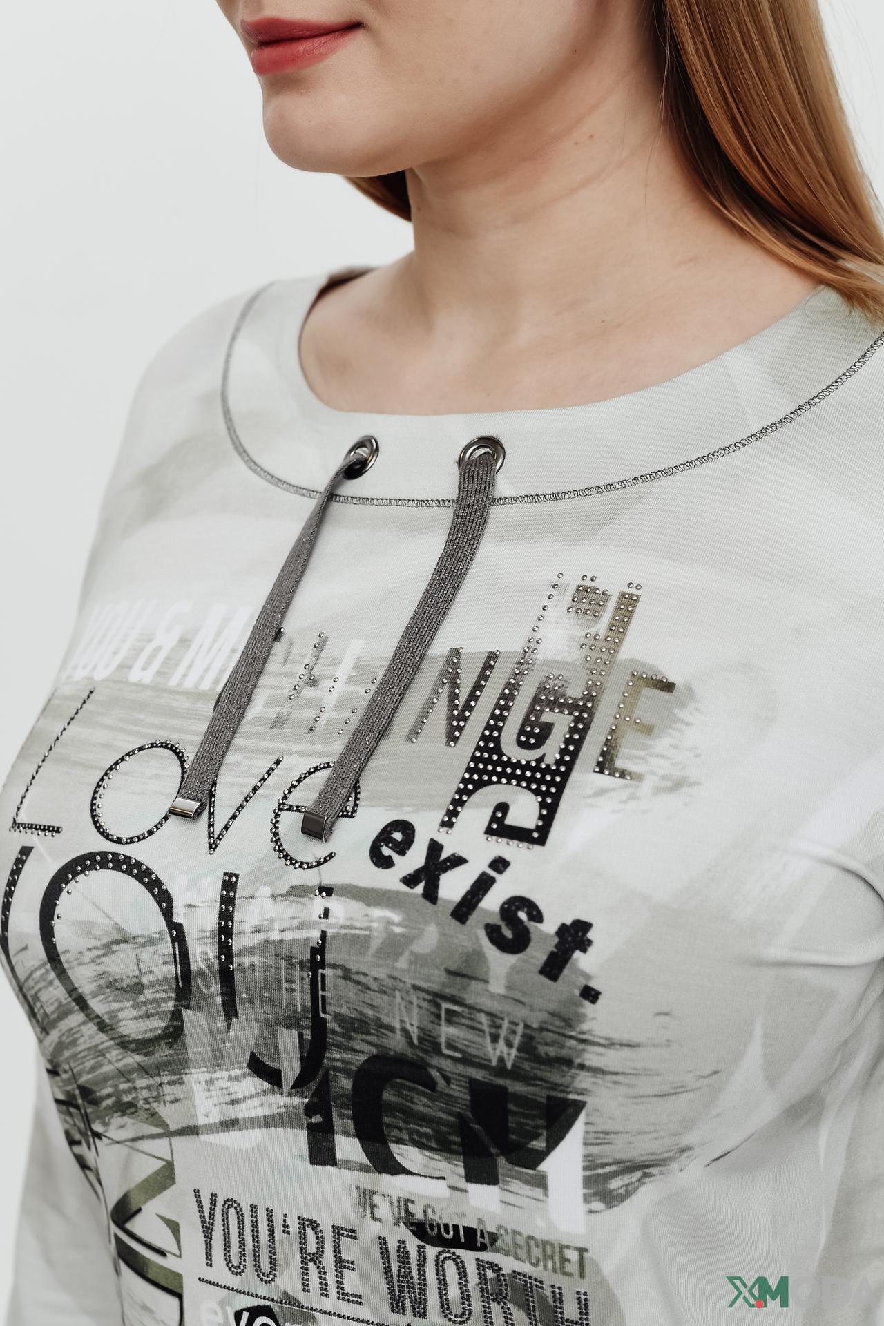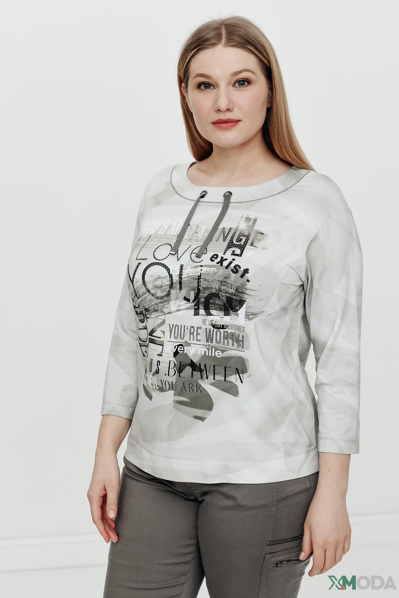 - Дизайн: Оригинальный принт с графическими элементами и текстовыми вставками, выполненный в сдержанной цветовой гамме, делает пуловер актуальным и универсальным. Акцентная шнуровка на горловине добавляет модели модную деталь.