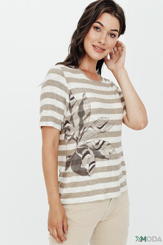Женский пуловер Rabe collection бежевого цвета с короткими рукавами и оригинальным цветочным принтом. Модель выполнена в полоску и станет отличным дополнением к вашему гардеробу. Состав: вискоза 92%, эластан 8%