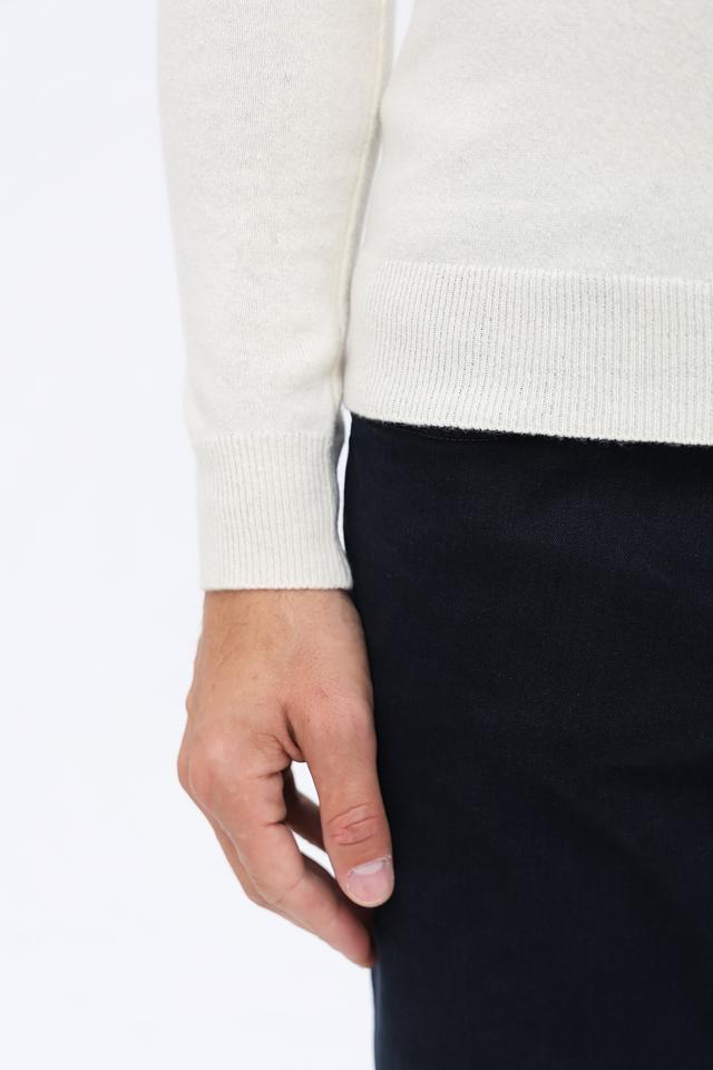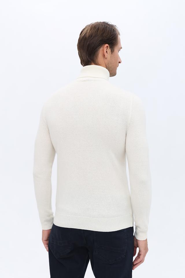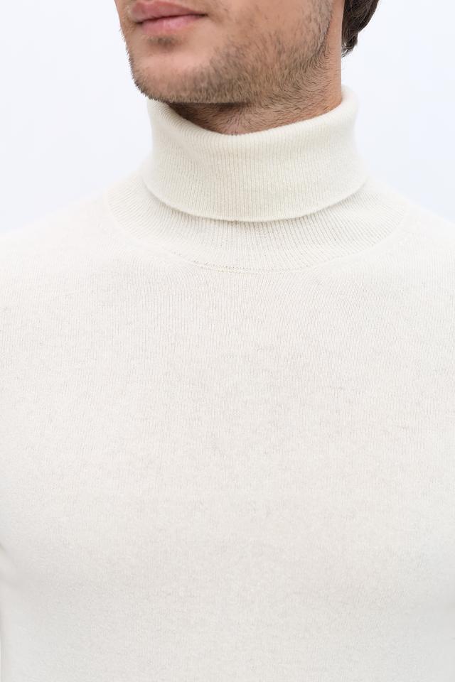 Водолазка имеет классический крой с длинными рукавами и облегающим силуэтом, который подчеркивает фигуру. Текстура вязки мелкая и аккуратная, что придает изделию изысканный вид. Высокий воротник-стойка обеспечивает дополнительную защиту от холода и ветра.