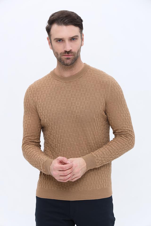 Мужской джемпер Radi Perugia бежевого цвета с выразительной текстурной вязкой. Изготовлен из 100% шерсти, обеспечивающей комфорт и тепло. Классический крой и круглый вырез делают этот джемпер универсальным элементом гардероба. Состав: шерсть 100%