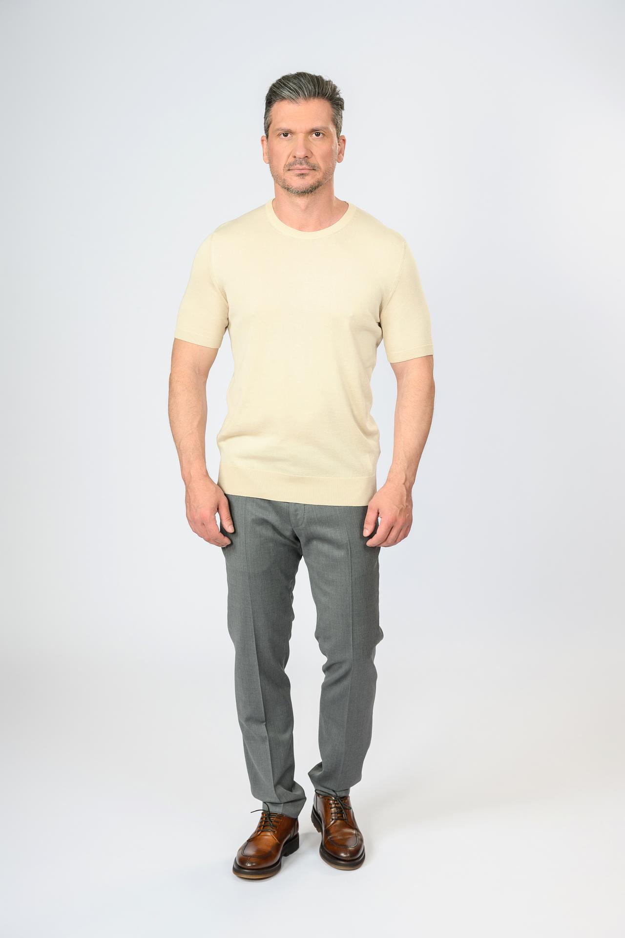 Джемпер сочетается с брюками, джинсами, шортами. Подходит для любого времени года и любого случая.