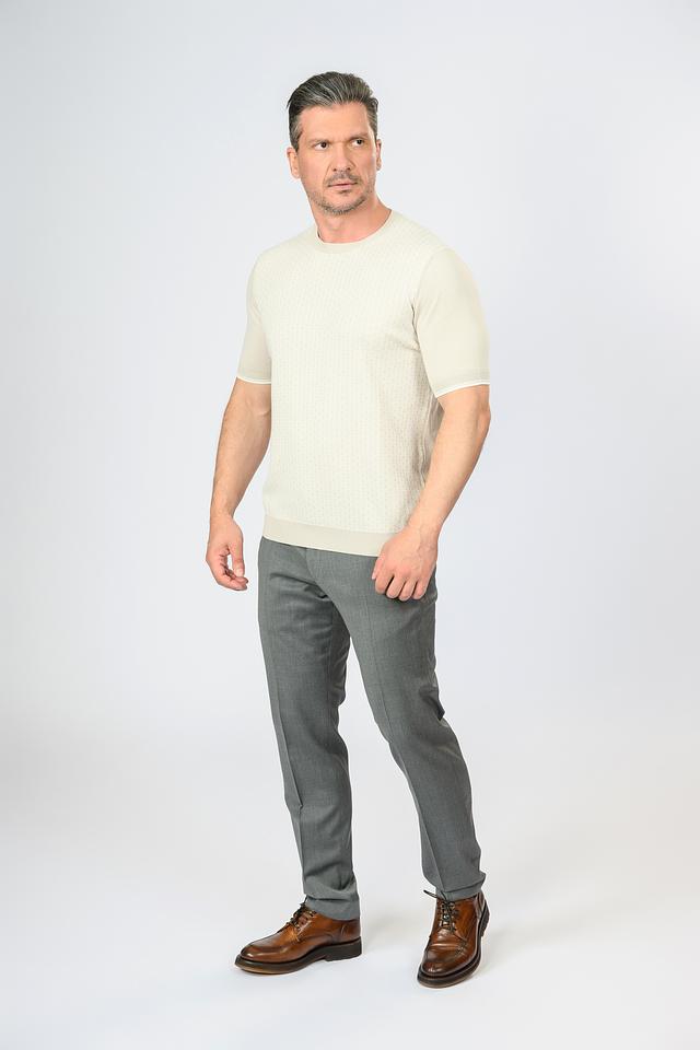 Модель имеет короткий рукав и круглый вырез горловины, что делает ее универсальной для различных стилей одежды. Текстурная вязка добавляет изделию изысканности и оригинальности.
