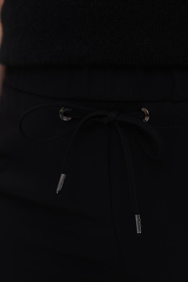 Брюки выполнены из высококачественного полиэстера, что обеспечивает комфорт в носке и простоту ухода. Эластичный пояс с кулиской позволяет регулировать посадку по фигуре, а небольшие декоративные элементы в виде металлических деталей добавляют изюминку.