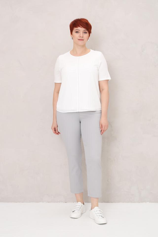 Брюки имеют классический крой с зауженными к низу штанинами, что визуально удлиняет ноги и придает образу элегантность. Модель дополнена стандартным набором карманов — двумя боковыми и двумя задними.