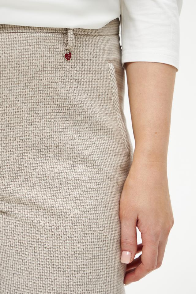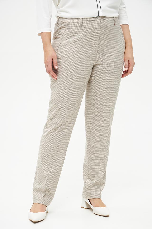Брюки Relaxed by Toni бежевого цвета с клетчатым принтом — стильное и комфортное решение для создания повседневных образов. Модель выполнена из мягкой ткани с добавлением вискозы и эластана, обеспечивающих удобную посадку и свободу движений. Состав: полиэстер 62%, вискоза 33%, эластан 5%