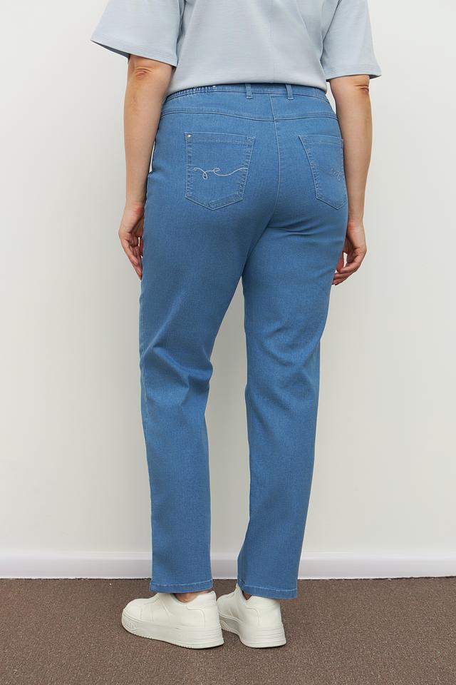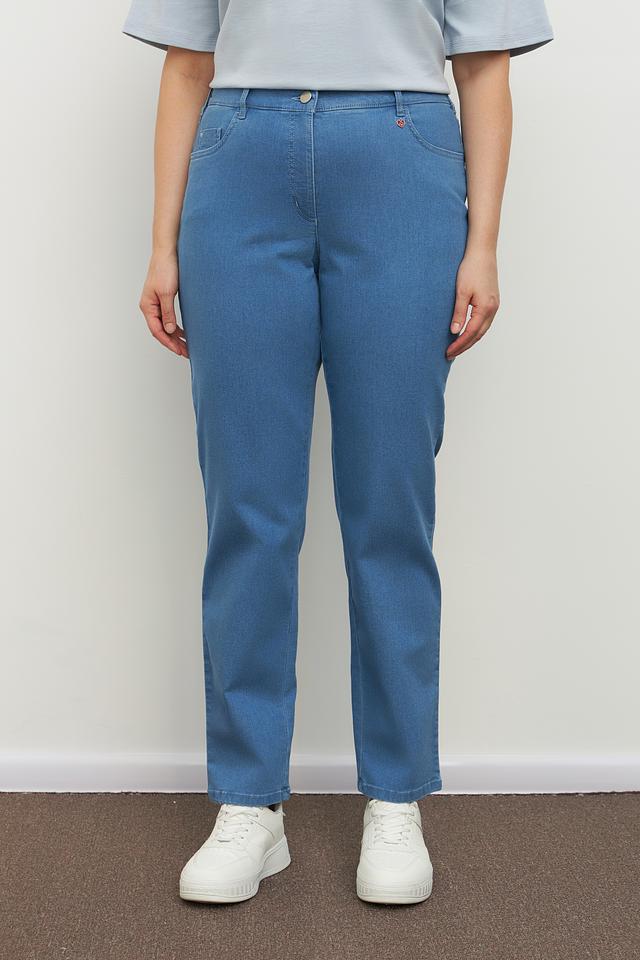 Голубые брюки от Relaxed by Toni из хлопка с добавлением полиэстера и эластана. Модель с эластичным поясом и классическим кроем. Состав: хлопок 69%, полиэстер 29%, эластан 2%