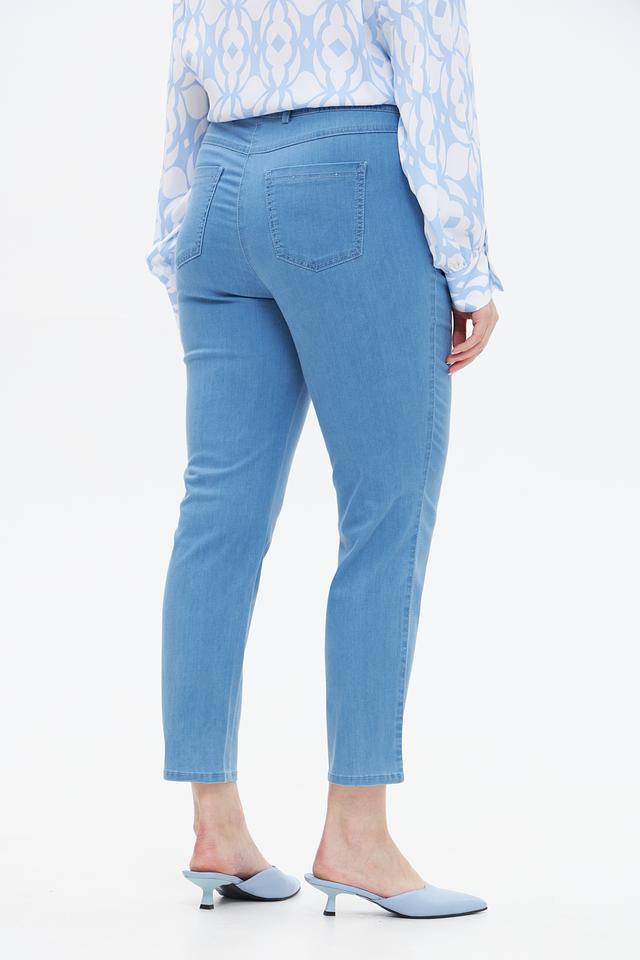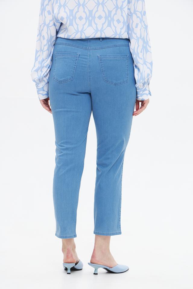 Голубые джинсы Relaxed by Toni из хлопка с добавлением полиэстера и вискозы. Модель с эластичным поясом и укороченным силуэтом. Состав: хлопок 66%, полиэстер 21%, вискоза 11%, эластан 2%
